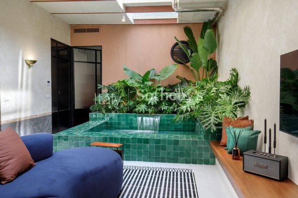 Dieses bezaubernde Anwesen ist ein wahres Juwel der Ruhe und des Komforts. Das gemütliche und raffinierte Wohnzimmer verfügt über einen reizenden Innenbrunnen, der dem Raum eine Note der Gelassenheit verleiht und eine entspannende und angenehme