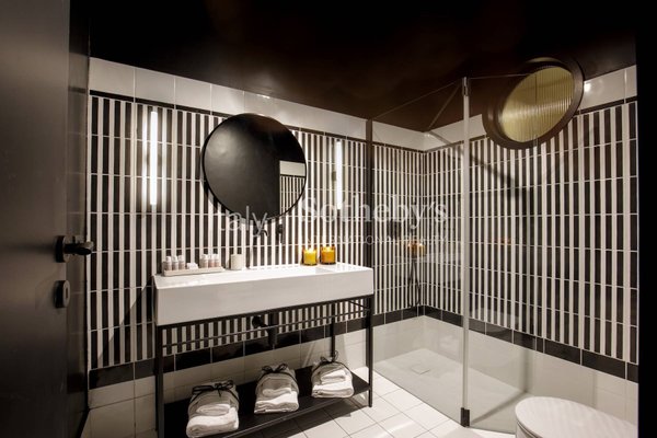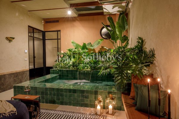 Die drei geschmackvoll eingerichteten Doppelzimmer bieten einen komfortablen und entspannenden Rückzugsort, während die zwei Badezimmer, von denen eines über ein luxuriöses türkisches Bad verfügt, höchsten Komfort und Wohlbefinden garantieren. Das Anwesen befindet sich im Erdgeschoss eines eleganten Gebäudes und verfügt über einen eigenen Eingang direkt von der Straße aus, was sowohl Bequemlichkeit als auch vollständige Privatsphäre gewährleistet.