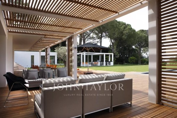 In einer der prestigeträchtigsten Domains von Cap d'Antibes und auf der Westseite! Diese zeitgenössische Villa hat alle Superlative; Panoramablick auf das Meer, flaches Grundstück von fast 4000 qm mit einer Wohnfläche von ?? 688 qm