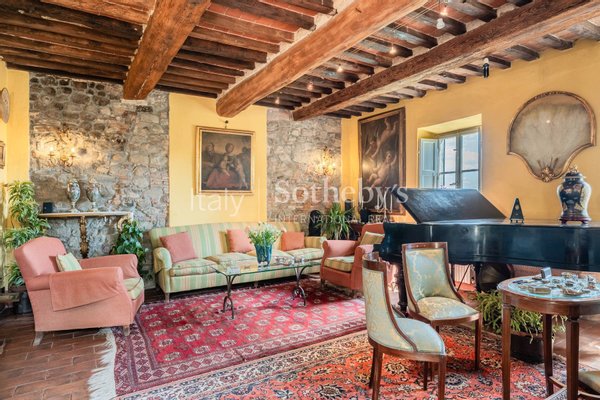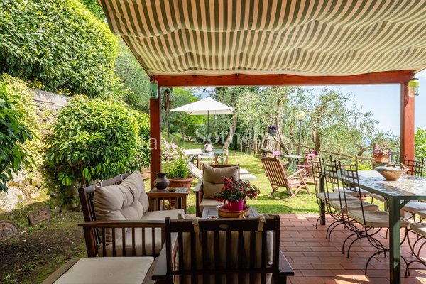 Das Anwesen bietet zahlreiche Entspannungsbereiche, darunter Panoramagärten, Pergolen, Holzöfen und Grillplätze, ideal für die Ruhe im Freien. Abgerundet wird das Bild durch einen großen Parkplatz und einen 13x5 m großen Swimmingpool mit Salzanlage und atemberaubendem Blick über die Ebene von Lucca.