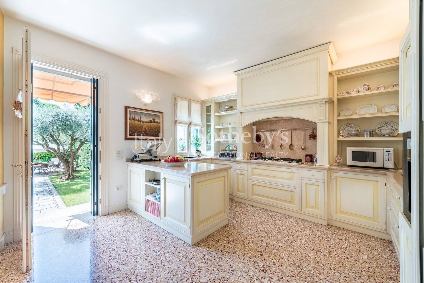In den Berici-Hügeln, einer Gegend, die reich an Geschichte und Kultur ist und bezaubernde Naturlandschaften bietet, liegt die lebendige und gastfreundliche Stadt Lonigo, die gut mit Verona und Vicenza verbunden ist. Direkt im Stadtzentrum, nur wenige Schritte vom historischen Piazza Garibaldi entfernt und mit allen Dienstleistungen sofort zugänglich, steht diese elegante Villa aus dem 20. Jahrhundert mit einem einfachen, aber raffinierten Stil, die vollständig renoviert wurde. Das Haus verfügt über geräumige und helle Zimmer, große Sorgfalt in architektonischen Details, Auswahl der Materialien und das Niveau der Ausführungen, was ein gründliches Studium und die Forschung bei der Erhaltung der stilistischen Kohärenz widerspiegelt, die das gesamte Anwesen, sowohl innen als auch außen, sowie den privaten Garten aufwertet. Über mehrere Ebenen entwickelt, befinden sich die Hauptzimmer im Edelsgeschoß und dem darüber liegenden Stockwerk, einschließlich des Wohnbereichs mit Kamin und direktem Zugang zum ausgestatteten Garten, einem Wohnzimmer, einem Aufenthaltsraum, drei Doppelzimmern, einer Garderobe, einem Arbeitszimmer und drei Badezimmern. Auf dem oberen Dachgeschoss befindet sich ein großer offener Raum mit einem Billardzimmer und großzügigen Erholungs- und Entspannungsbereichen. Das Erdgeschoss umfasst einen Fitnessraum, eine Taverne mit Kamin, einen Waschraum und zwei bequeme Garagen. Zusätzlich überblicken zwei kleine Terrassen den exklusiven Innenhof, und ein typischer zentraler Balkon ziert die Hauptfassade der Villa. Insgesamt erfordert dieses Anwesen keine Eingriffe, da es konservativ in einwandfreiem Zustand gehalten wird.