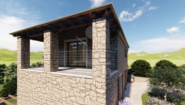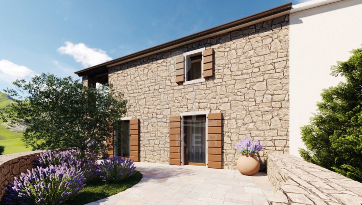 Traditionelles Steinhaus in grüner Naturregion mit Meerblick in der Nähe von Buje