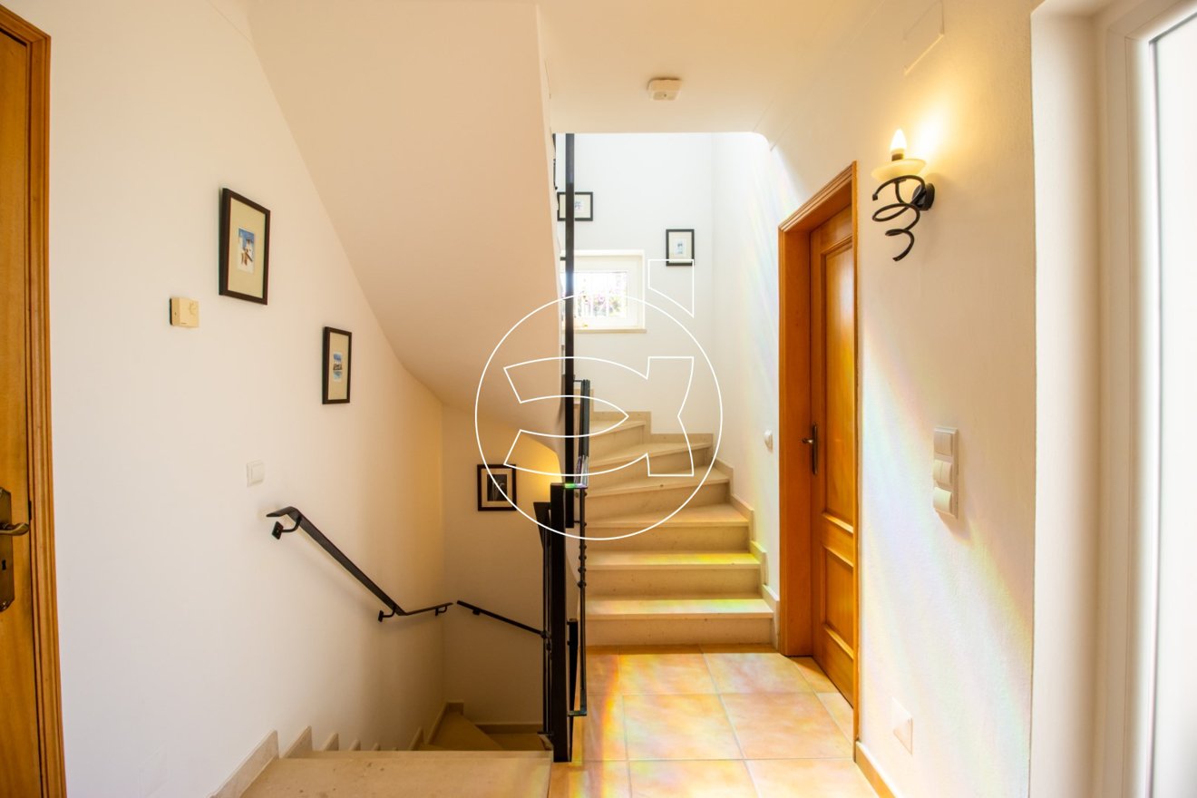 Die erste Etage bietet Platz für 2 Schlafzimmer, beide mit Zugang zu einem Balkon mit atemberaubender Aussicht. Es gibt auch ein großzügiges Familienbadezimmer sowie eine Küchenzeile.