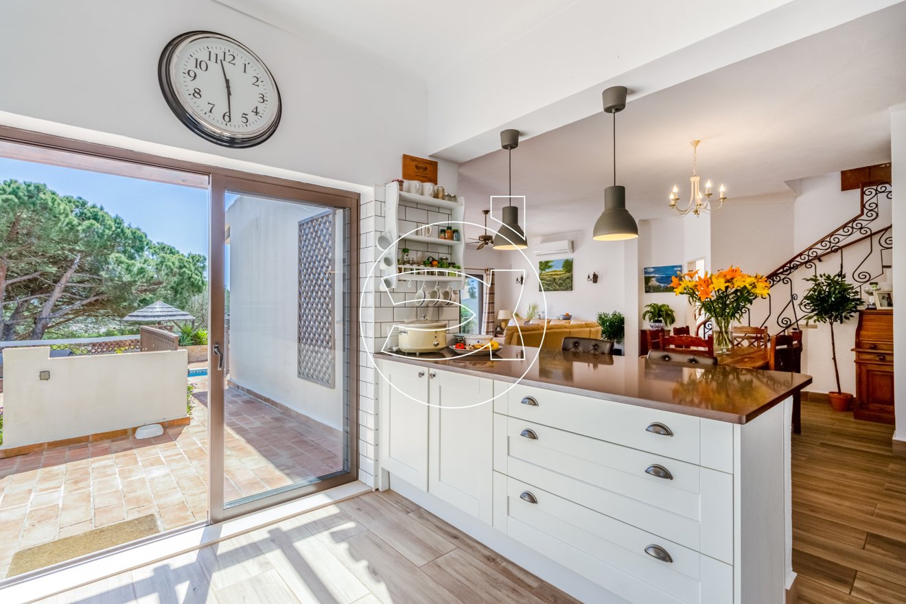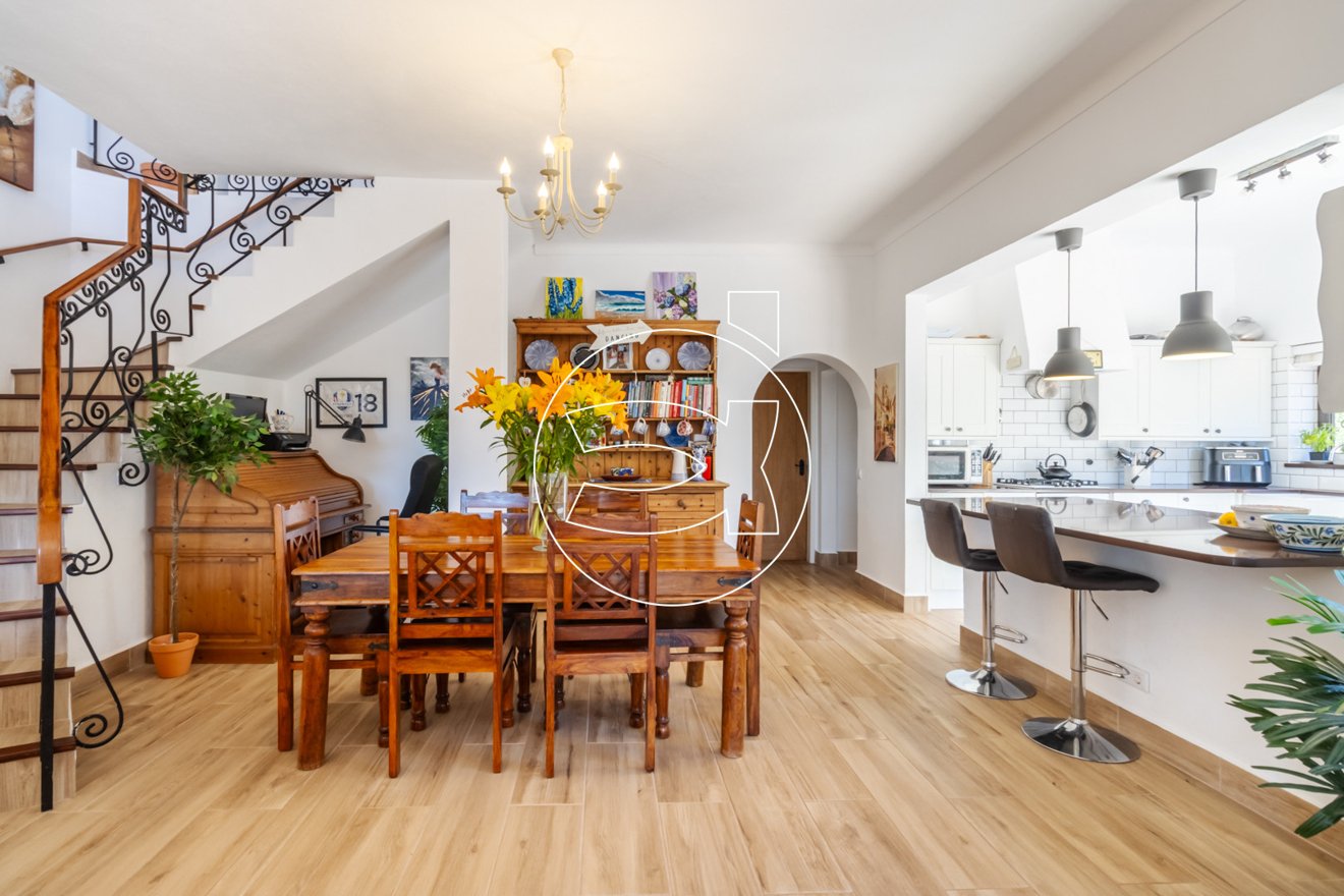 Im Erdgeschoss kommt die Villa erst richtig zur Geltung. Es gibt einen schönen, neu renovierten, geräumigen, offenen Wohn-, Ess- und Küchenbereich mit einer schönen Terrasse mit Blick auf den Pool.