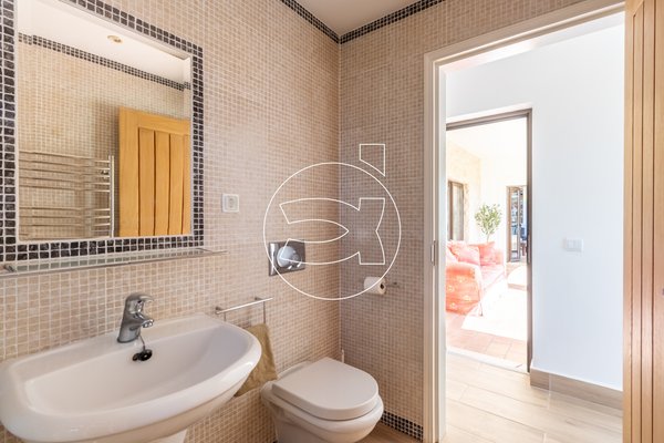 Außerdem gibt es einen weiteren Raum, der als Büro oder Fitnessraum genutzt werden kann, einen Hauswirtschafts-/Waschraum, eine Gästetoilette, die ebenfalls vom Gartenbereich aus zugänglich ist und ein Tor am Ende des Gartens, welches direkten Zugang zum Golfplatz bietet.