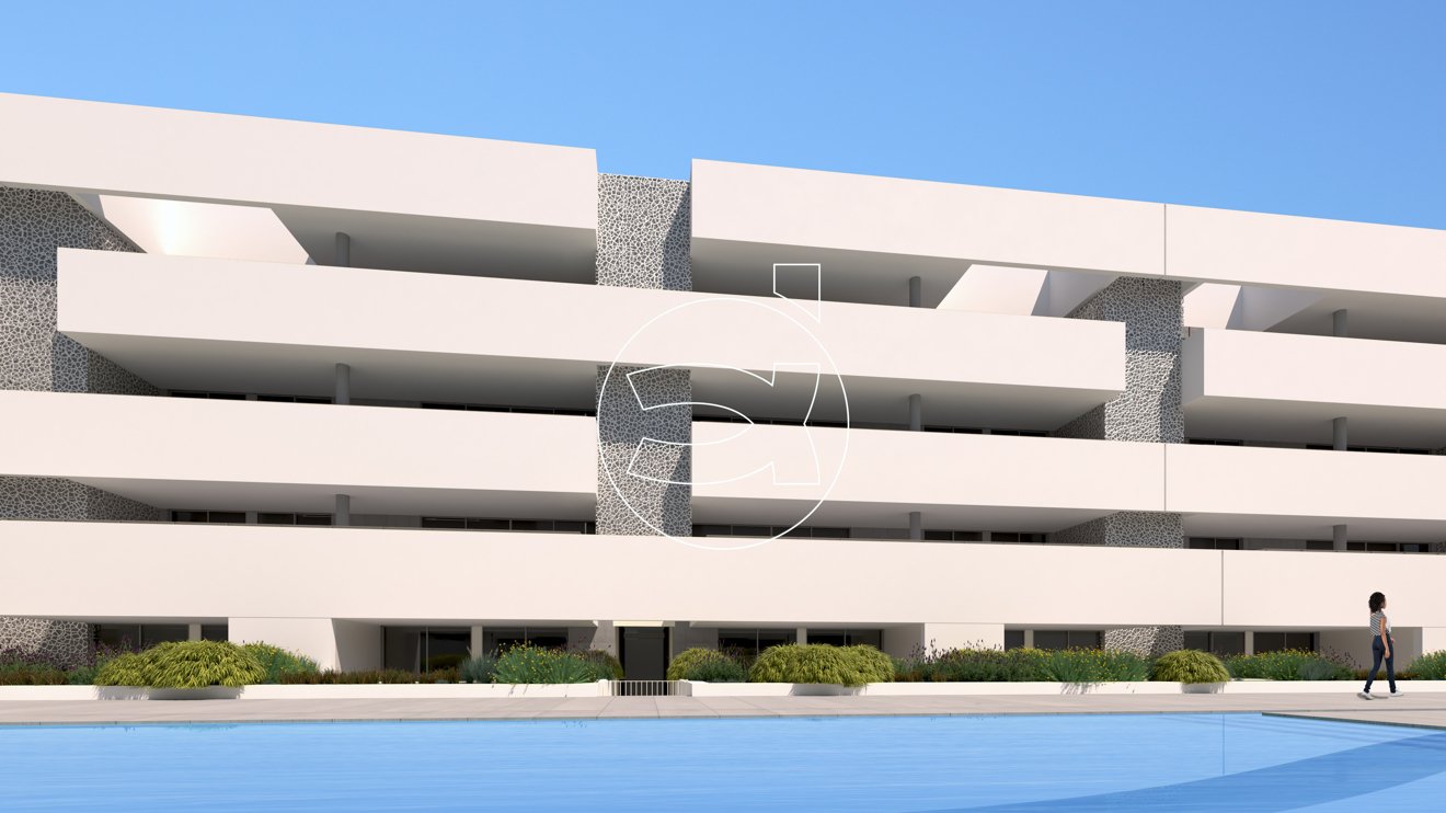 Es gibt sichere Parkplätze in einer Tiefgarage und das Gelände wird komplett mit schönen Gemeinschaftsgärten angelegt, die eine großzügige Sonnenterrasse sowie einen Außenpool umgeben.