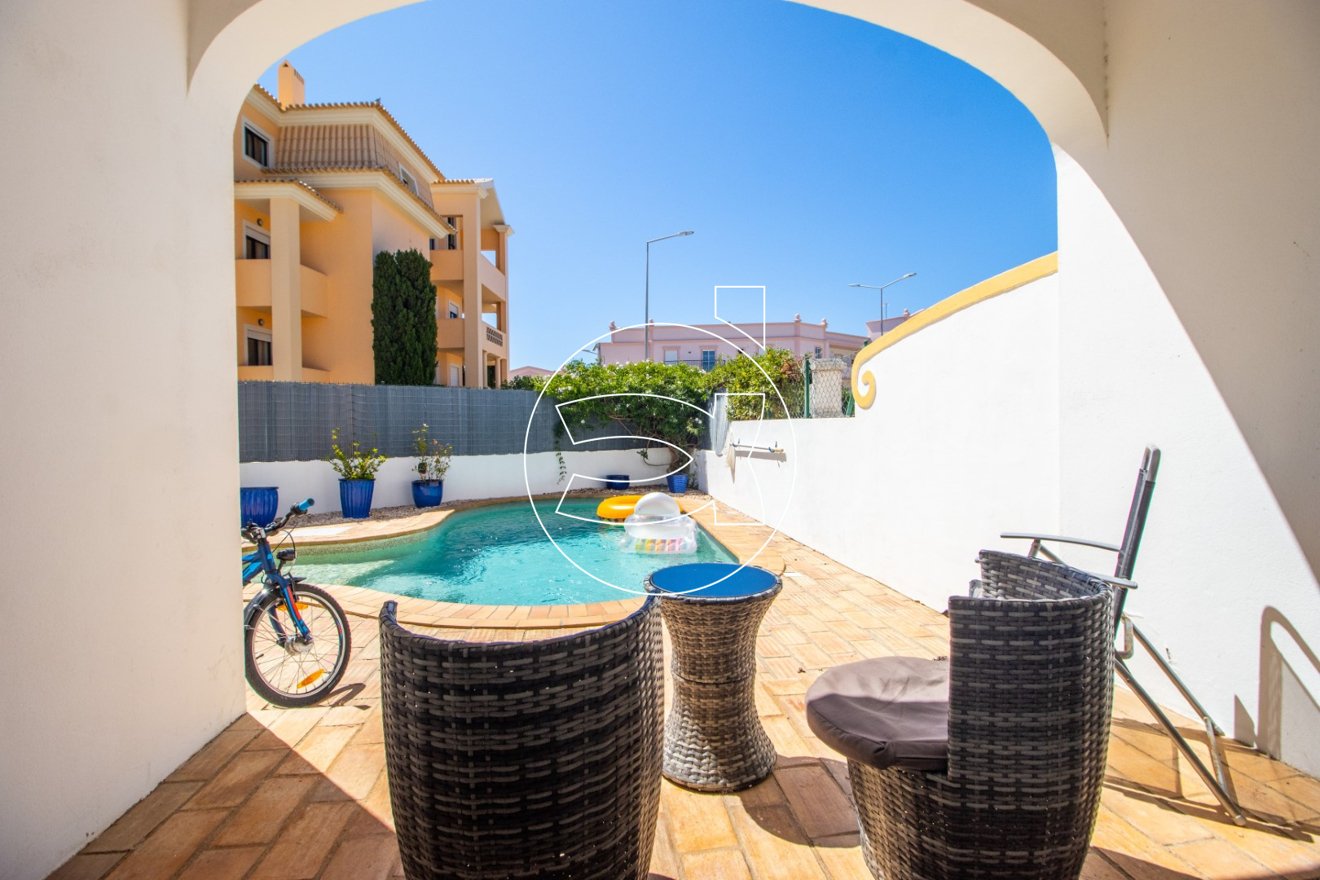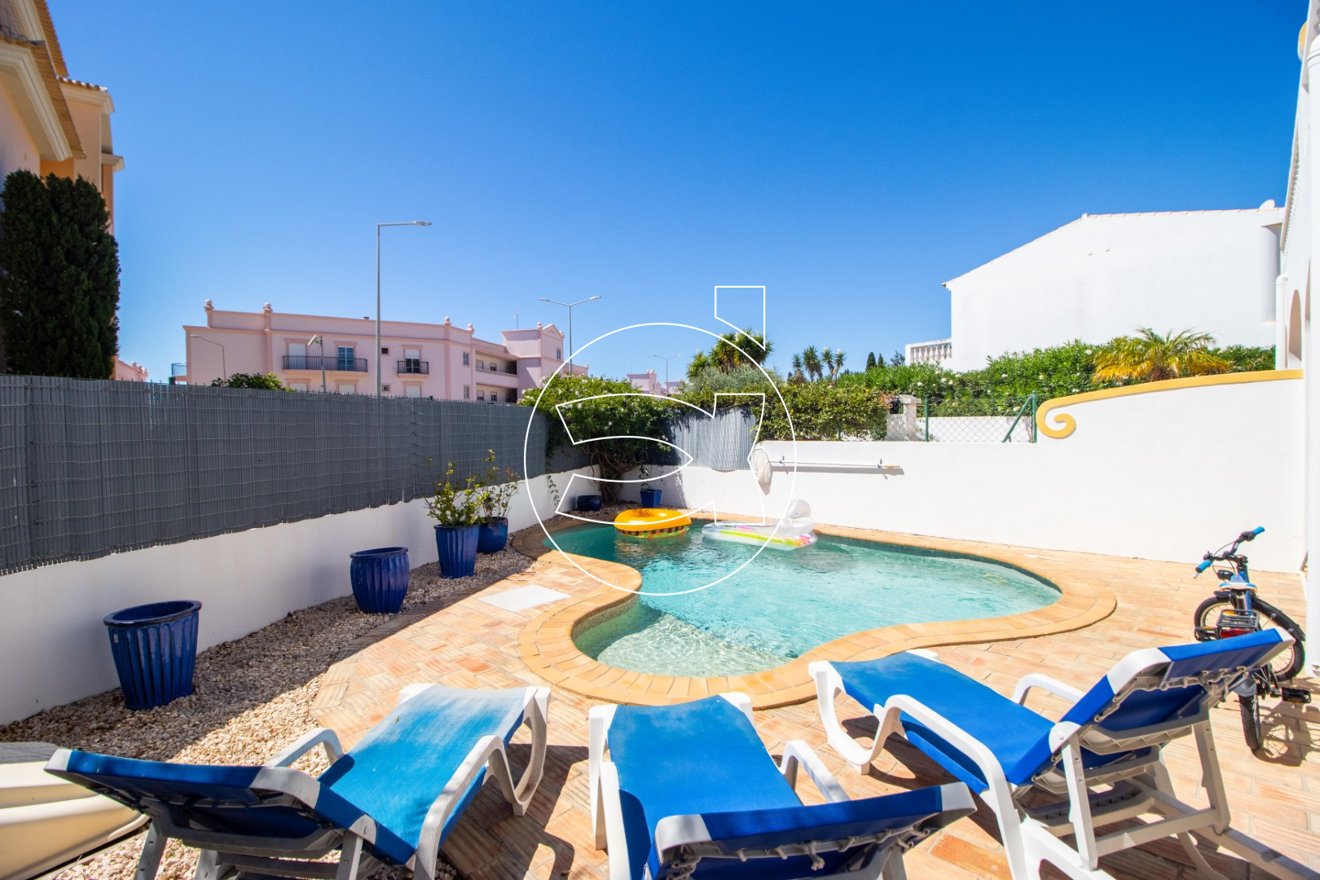 Dieses elegante Stadthaus mit 3 Schlafzimmern und einem herrlichen Swimmingpool liegt nur wenige Minuten vom Strand Praia da Luz und allen Annehmlichkeiten entfernt.