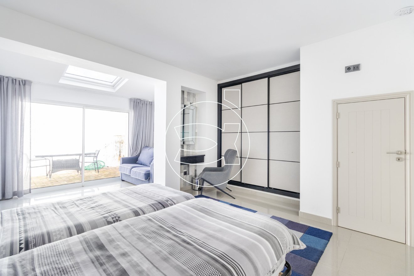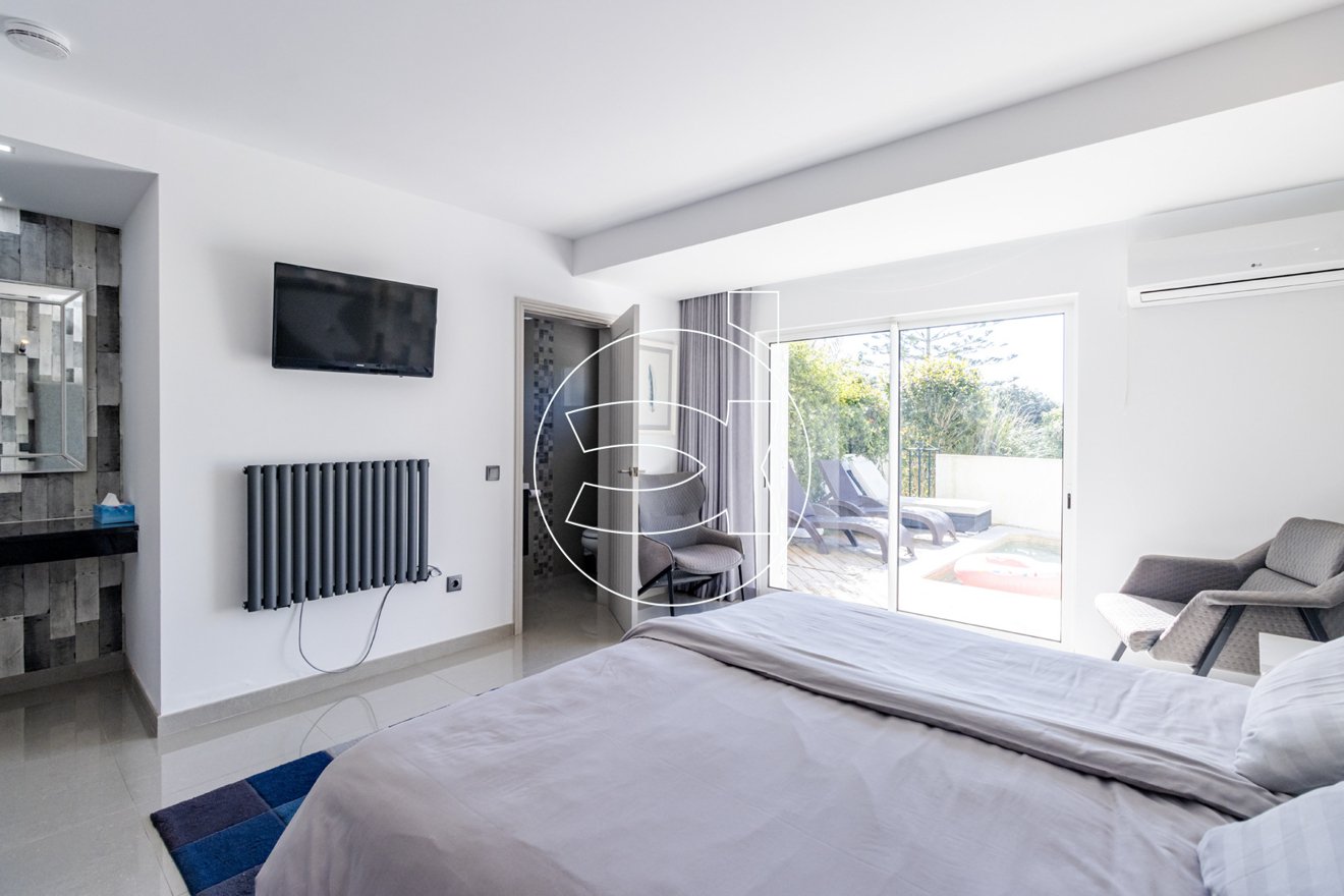 Eines der Schlafzimmer verfügt über eine private Terrasse, während das Hauptschlafzimmer zur Poolterrasse hin öffnet und einen einfachen Zugang zur Entspannung sowie zum Genuss im Freien bietet.