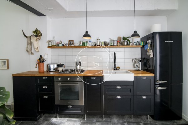 Das Erdgeschoss bietet einen großzügig dimensionierten Wohnbereich (derzeit als Galerie und Unterhaltungsbereich genutzt), eine große, professionelle und voll ausgestattete Küche sowie ein Gästebad.