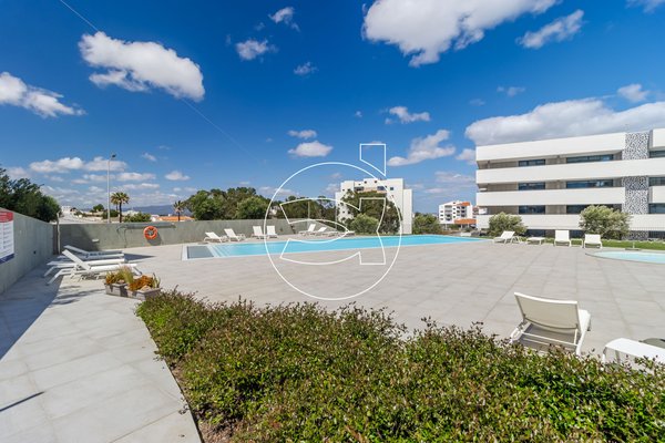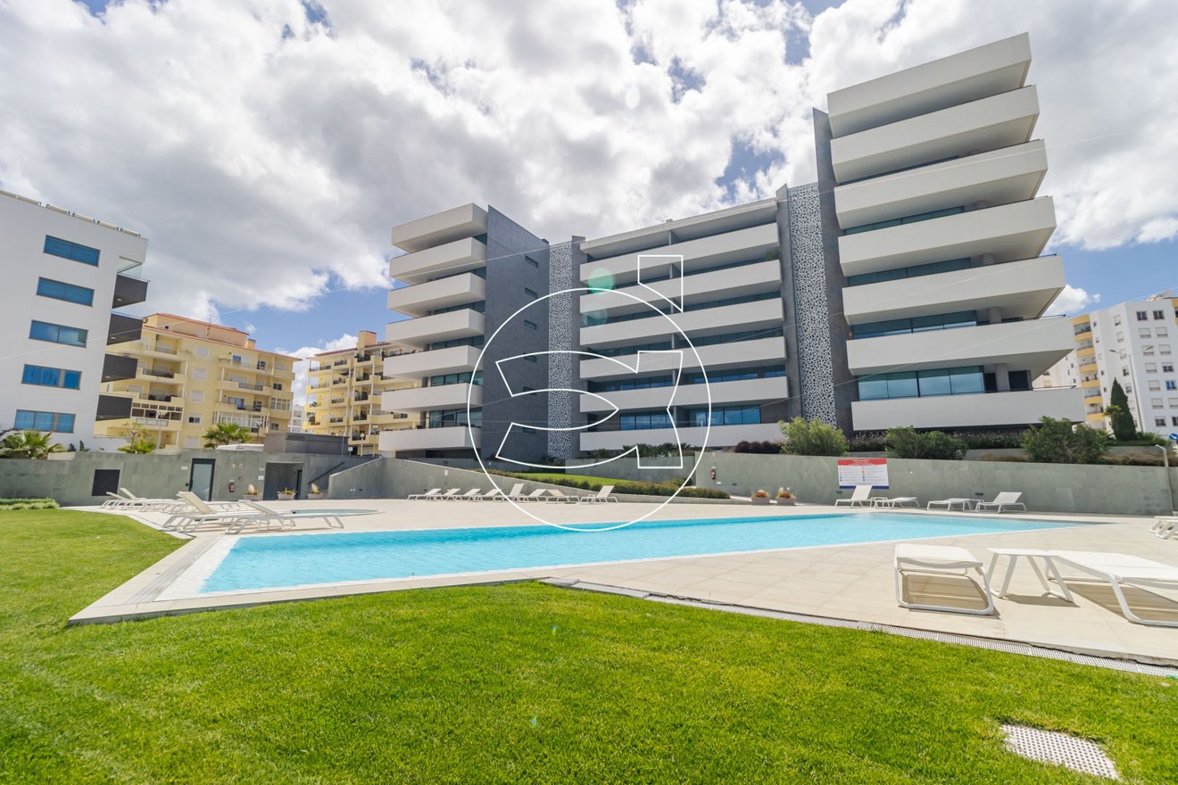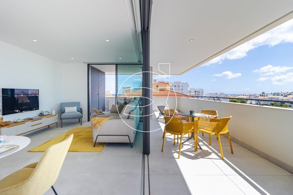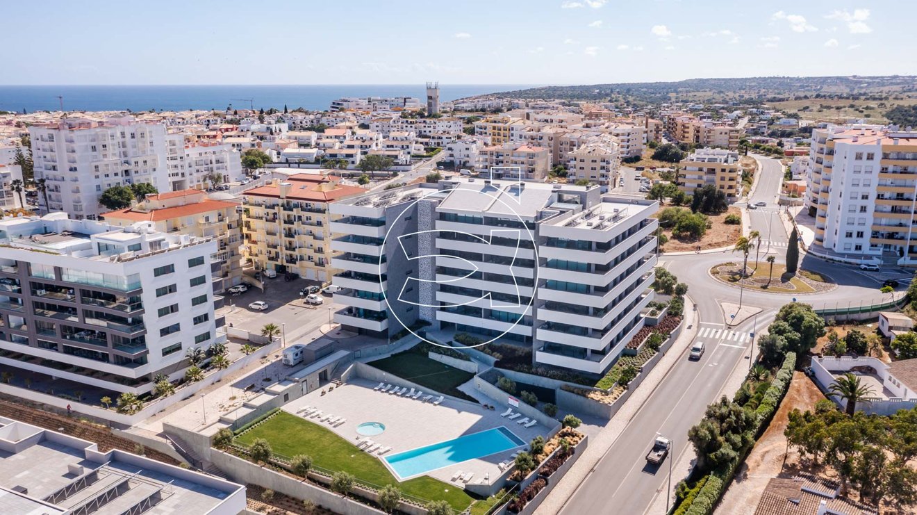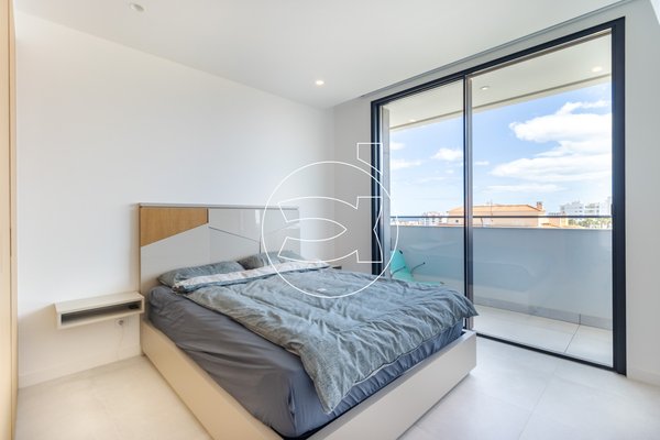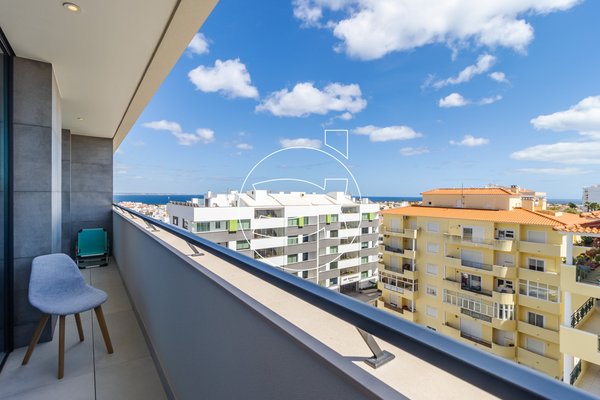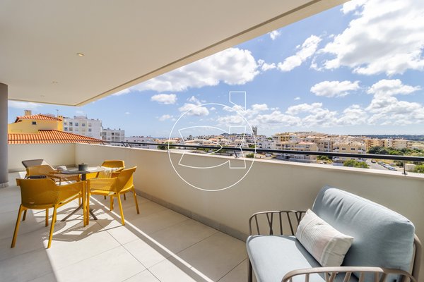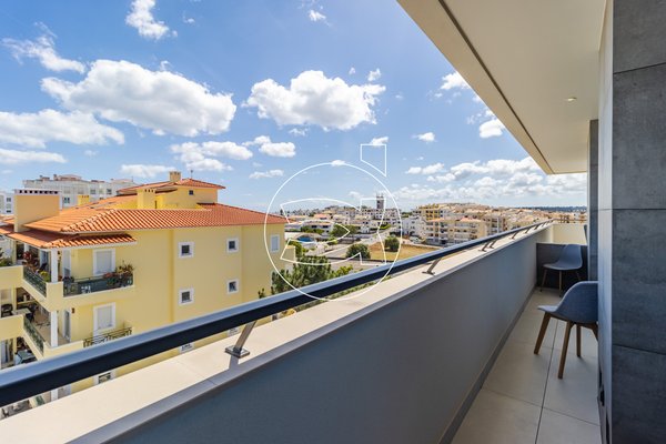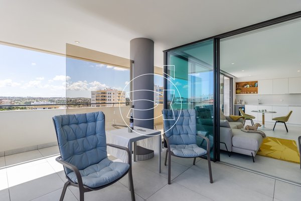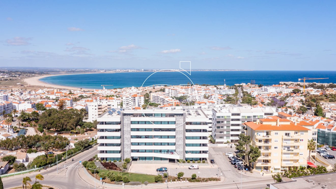 Moderne 2-Zimmer + 2-Badezimmer Wohnung mit Fernblick auf das Meer, gelegen im 5. Stock (oberste Etage) eines hochwertigen Gebäudes in Lagos, Algarve, Portugal.