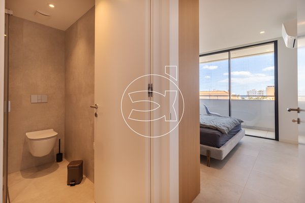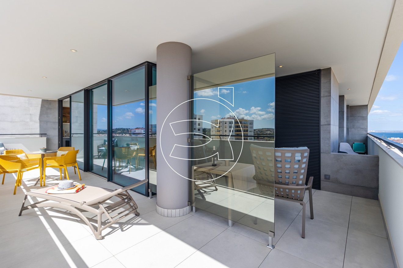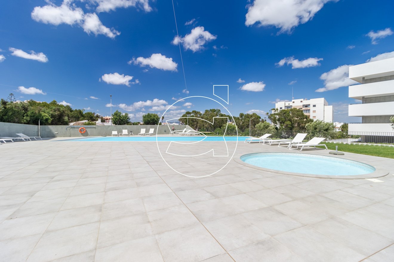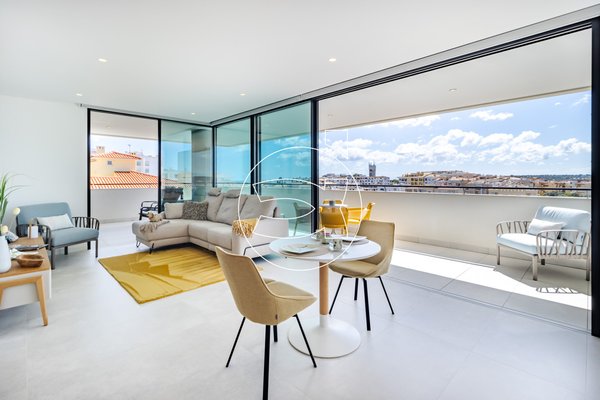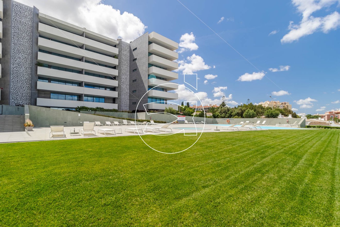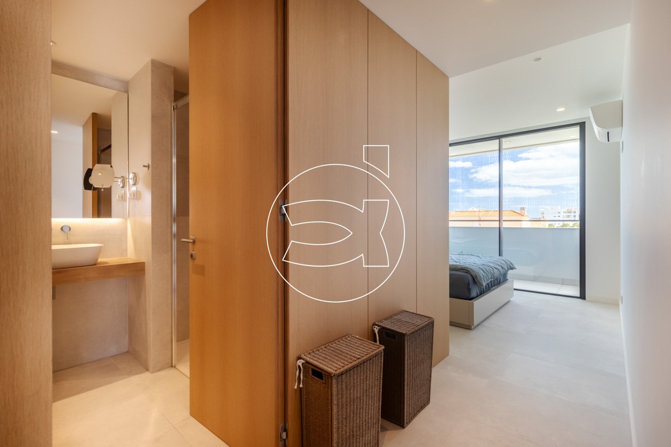 Moderne 2-Zimmer + 2-Badezimmer Wohnung mit Fernblick auf das Meer, gelegen im 5. Stock (oberste Etage) eines hochwertigen Gebäudes in Lagos, Algarve, Portugal.