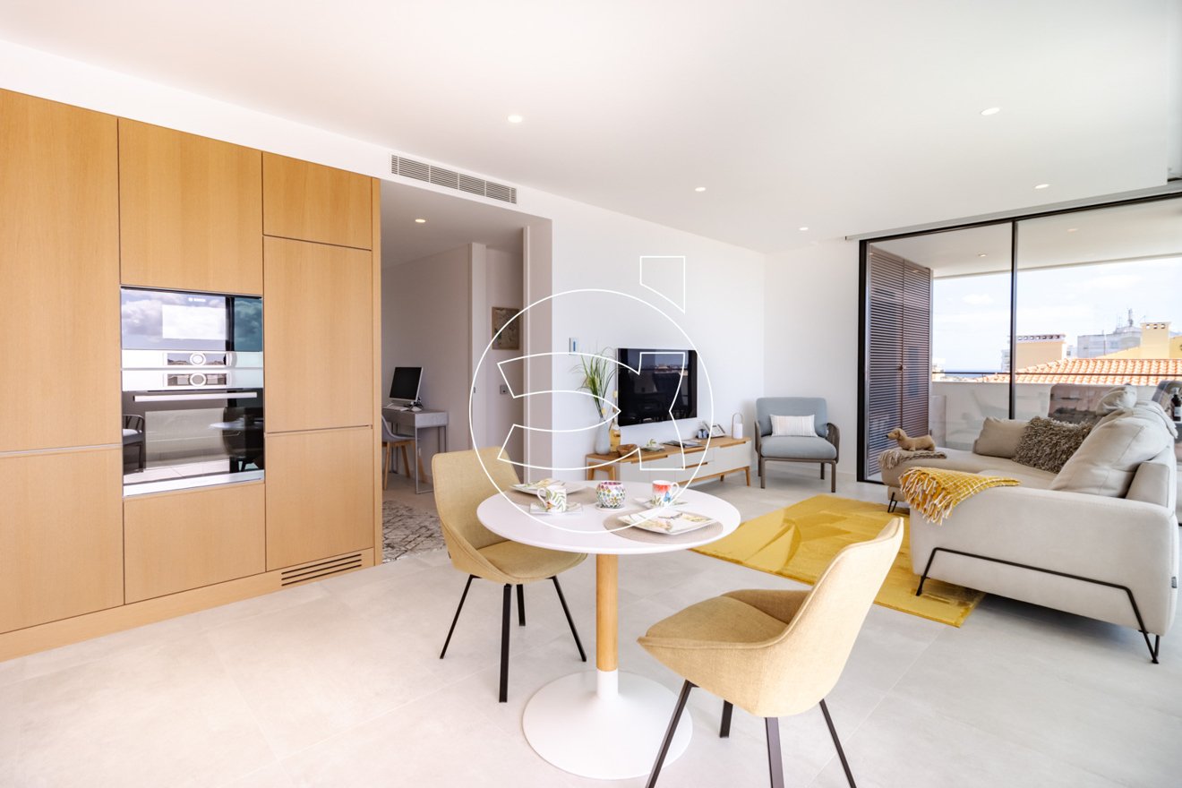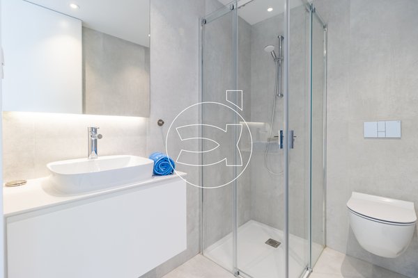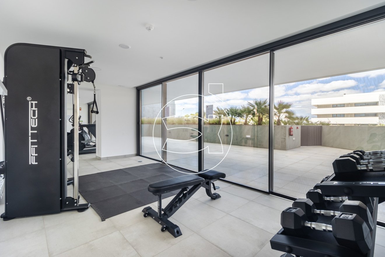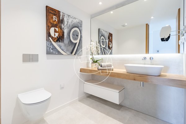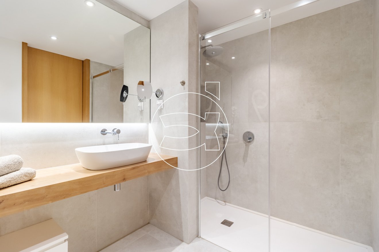 Weitere Merkmale sind eine Klimaanlage in der gesamten Wohnung für Kühlung und Heizung, Fußbodenheizung, elektrische Fensterläden, Waschmaschine, zugewiesener Parkplatz in der Tiefgarage sowie schnelles kabelgebundenes Internet.