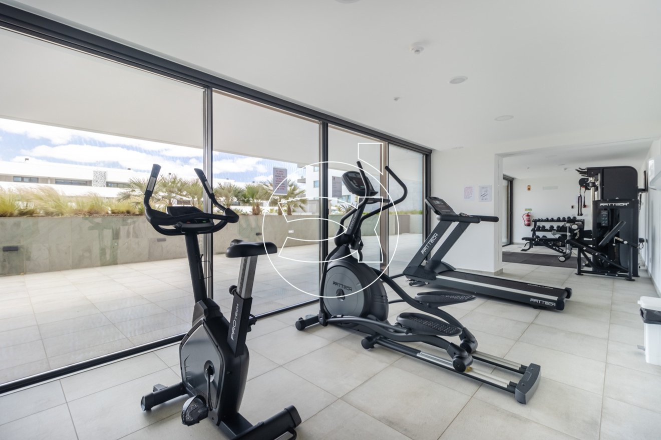Neben dem Außenpool und dem Kinderbecken gibt es auch Zugang zu einem Fitnessstudio.