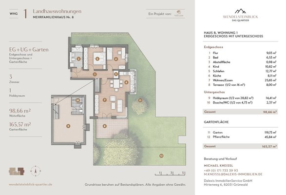Die exklusive Landhauswohnung Nr. 1 im Gartengeschoss (EG) des Hauses 8 im Überblick: