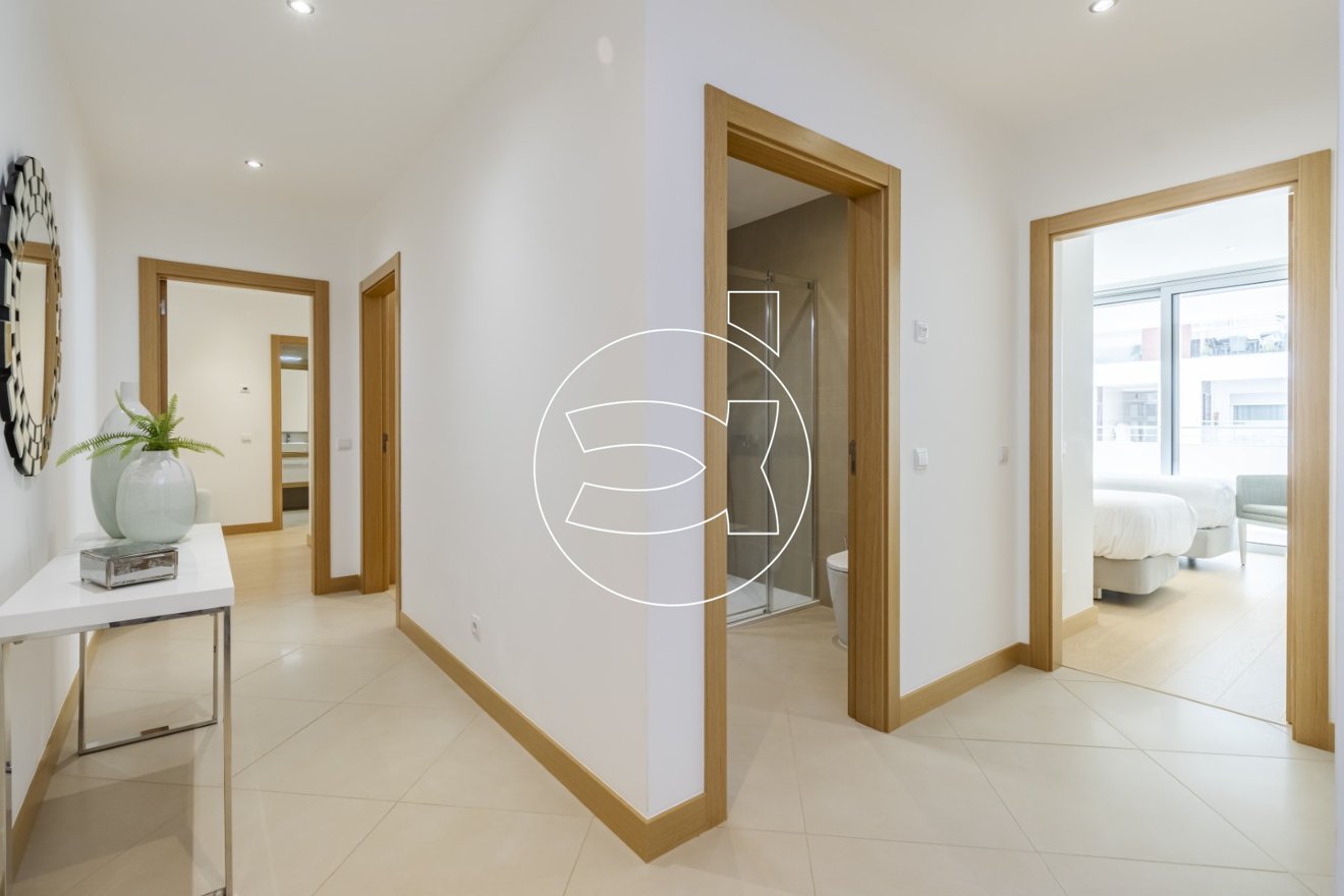 Die drei Schlafzimmer befinden sich auf der linken Seite des Flurs. Zwei davon sind en-suite, das andere wird durch das Gästebad bedient. Von allen Schlafzimmern aus gelangt man auf die schöne, große Terrasse, so dass man das Gefühl hat, im Freien zu leben.