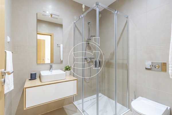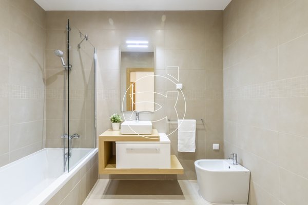Weitere Ausstattungsmerkmale sind Fußbodenheizung, Doppelverglasung, elektrische Rollläden, invertierte Klimaanlage, hochwertige Wärme- und Schalldämmung, zentrales Staubsaugersystem, Solaranlage zur Warmwasserbereitung sowie ein Doppelparker und ein großer Abstellraum in der Tiefgarage.