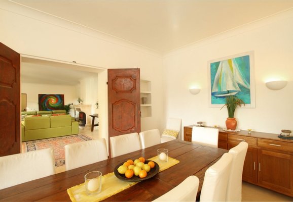 Es gibt ein einladendes Wohnzimmer mit einem Holzofen, ein separates Esszimmer und eine große Landhausküche mit Zugang zum Innenhof, wo sich eine separate Waschküche befindet. Auf dieser Ebene befinden sich auch ein Lesezimmer und ein eigenständiges Gästeapartment mit zwei Schlafzimmern mit eigenem Bad.