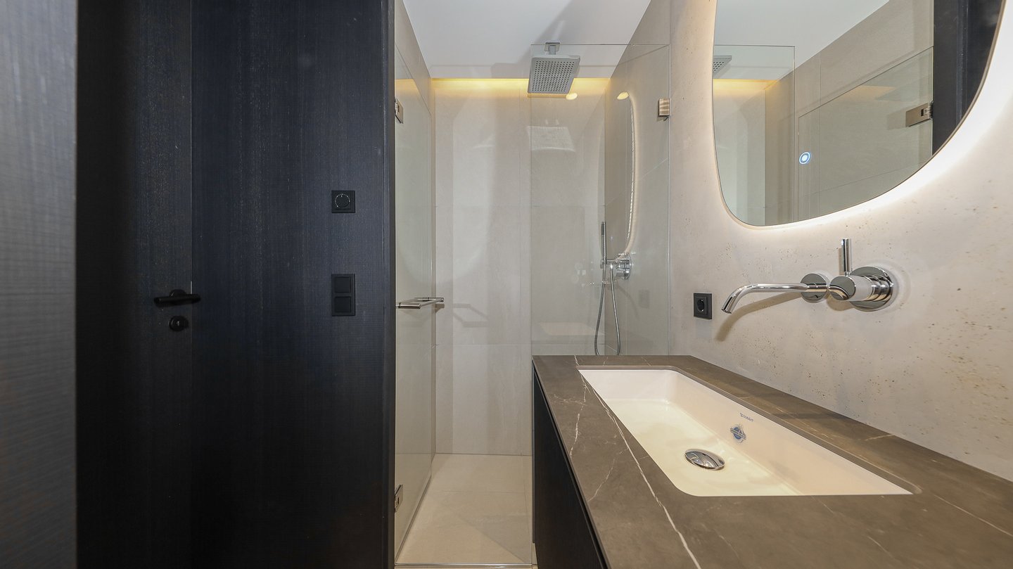 Der Masterbedroom mit großem Badezimmer sowie zwei weitere Schlafzimmer mit jeweils eigenem Badezimmer vervollständigen diese exklusive Wohnung. Von jedem Schlafzimmer gelangt man ebenfalls auf die Terrasse.