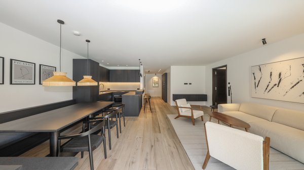 Weiters verfügt das Apartment über einen großen Wohnbereich mit offener Küche und gemütlicher Essecke.