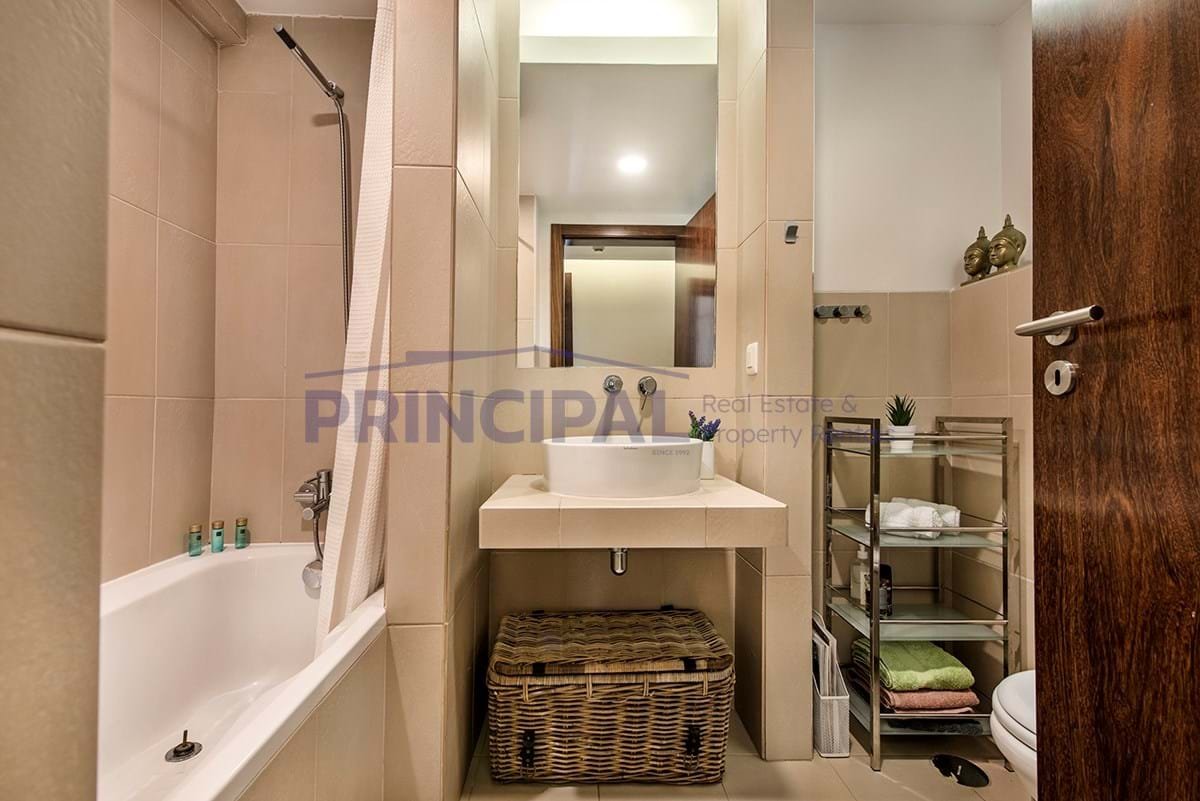Über einen Flur gelangen Sie zu den 2 Schlafzimmern mit Einbauschränken, 1 davon en suite (angepasst) und einem kompletten Badezimmer mit Badewanne.