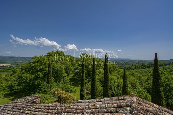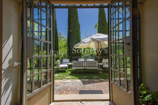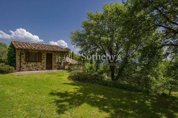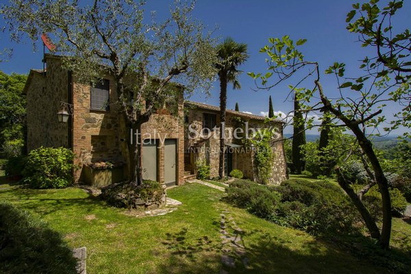 Eingebettet in die grünen Hügel der Toskana, zwischen den Dörfern Cetona und San Casciano dei Bagni, wo bereits die Römer und Etrusker ihre Siedlungen gründeten, befindet sich dieser historische Bauernhof aus dem 19. Jahrhundert, der eine Ecke des einzigartigen Paradieses bietet. Nur 2 km von den Dienstleistungen entfernt, ist es der ideale Ort für diejenigen, die einen Traumbauernhof in der Toskana möchten; man betritt das Anwesen durch einen echten Eichenpark, der einen sprachlos macht; von oben genießt man einen Panoramablick, der sich von Città della Pieve bis zum Monte Cetona erstreckt, der das Haus auf der Nordseite schützt. Die letzte größere Renovierung fand in den 2000er Jahren statt, und das Anwesen befindet sich in einem ausgezeichneten Erhaltungszustand; am Eingang führt das Esszimmer zur großen Küche mit Zugang zum Außenessbereich, wo unter einer Pergola aus Weinblättern der Grillplatz zu finden ist. Vom Erdgeschoss aus kann man in den Keller gehen, wo sich das Wohnzimmer befindet: ein beeindruckender Raum, der aus den alten Stallungen entstanden ist, wobei die Decke bewusst bis zum zweiten Stock geöffnet wurde, um die gesamte Höhe der Struktur zu schätzen. Auch im Untergeschoss befindet sich ein romantisches Zitronenhaus, das zum Garten hin offen ist und im Winter einen gemütlichen Ort bietet, mit einem Bad und einem Arbeitszimmer. Im Erdgeschoss finden wir auch ein Schlafzimmer mit eigenem Bad, das von außen oder über drei Stufen im Inneren erreichbar ist. Die erste Etage ist sowohl intern als auch extern über zwei Treppen verbunden, die zu zwei Panoramaterrassen führen. Auf dieser Etage befindet sich der Schlafbereich, der aus einem Hauptschlafzimmer mit eigenem Bad und Balkon, einem Wohnbereich/Bibliothek und einem zweiten Schlafzimmer mit Zugang zur Terrasse besteht. Die Aussicht aus den Fenstern ist wie natürliche Gemälde, und der Frieden ist absolut.