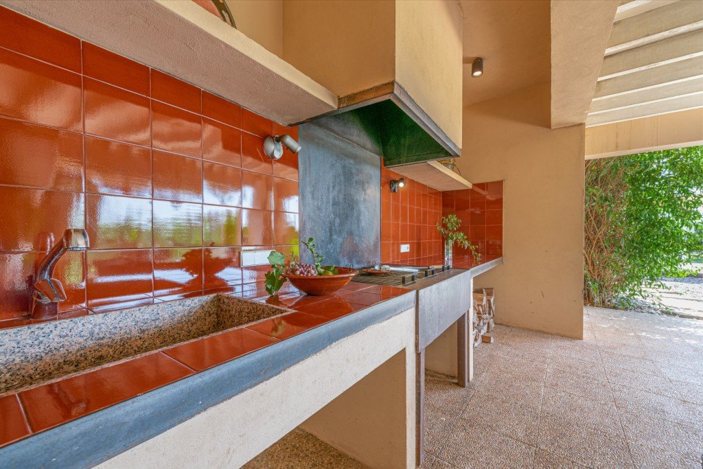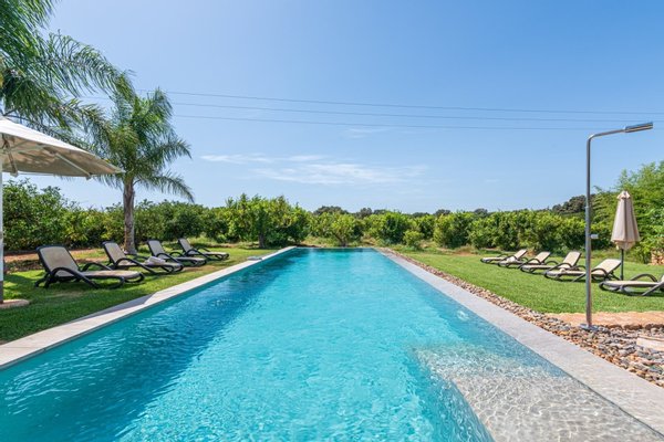 Der Außenbereich bietet den perfekten Rahmen, um das mediterrane Klima zu genießen. Es gibt mehrere Terrassen mit dem bereits erwähnten Grill, Essbereiche im Freien und eine Rasenfläche, die durch einen beeindruckenden Pool ergänzt wird.