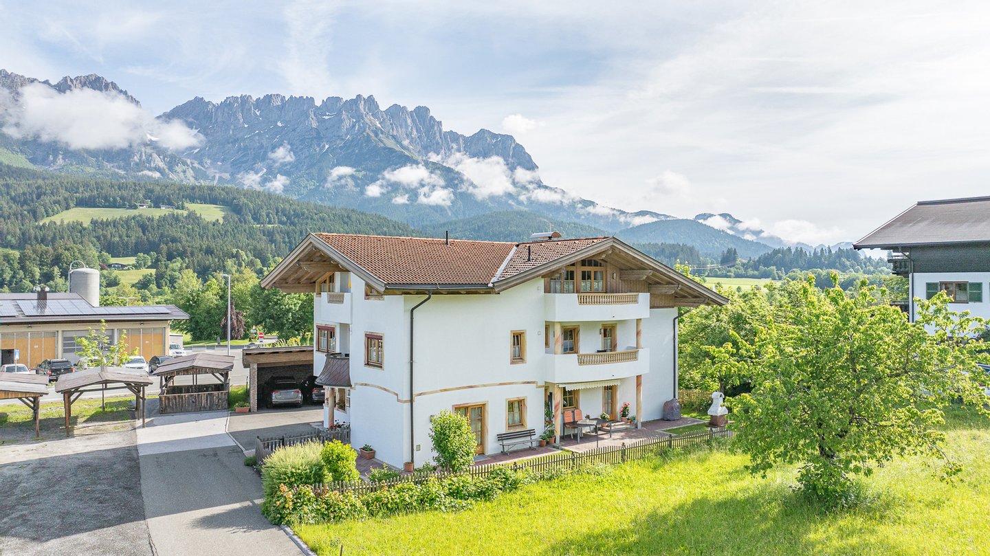 Zu jedem Apartment gehört ein Balkon oder eine Terrasse, von welchen man einen traumhaften Ausblick auf den gesamten Wilden Kaiser hat.
