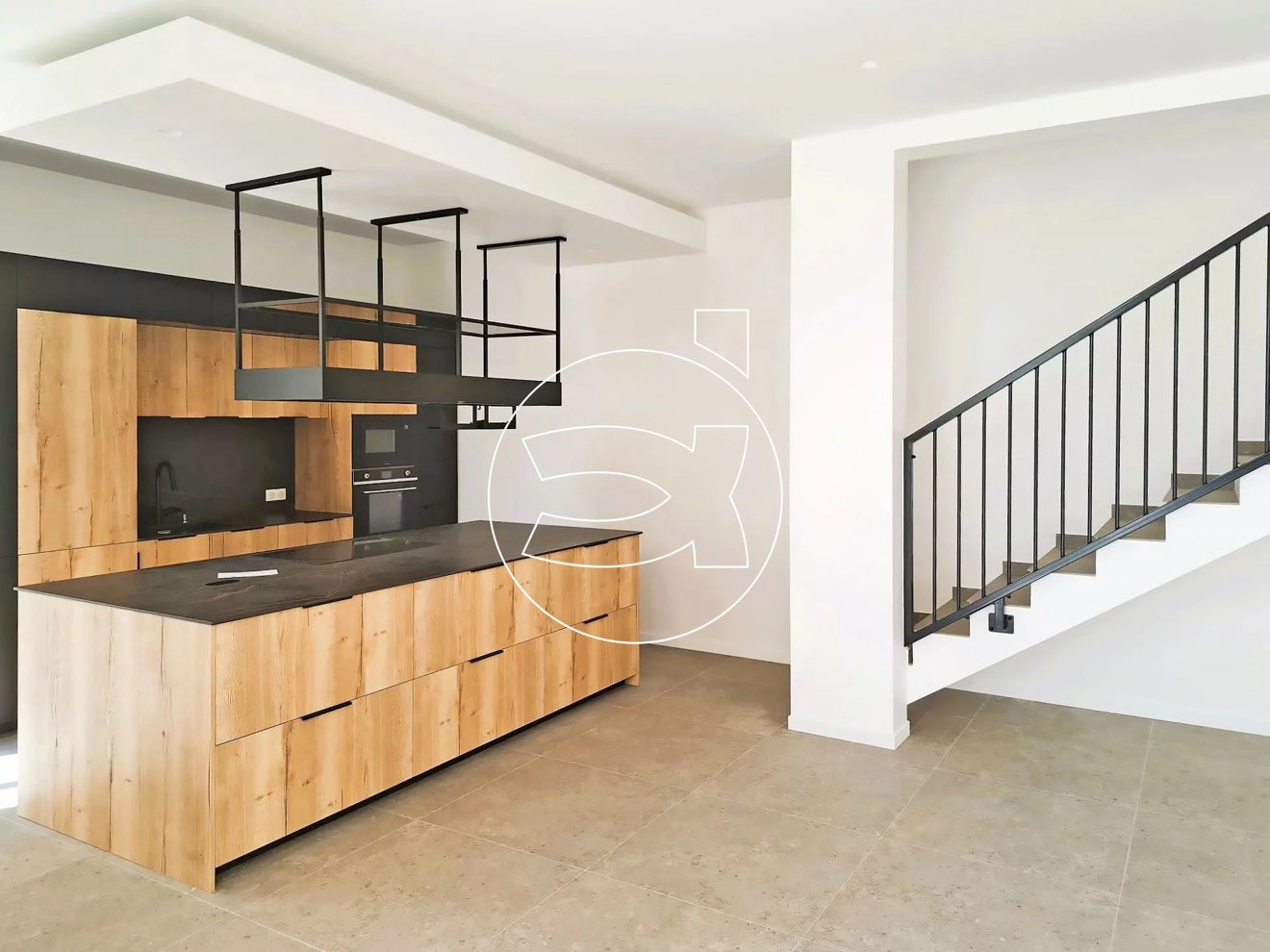Im Erdgeschoß befindet sich ein großes Wohnzimmer mit einer amerikanischen Küche, welches sich zum Garten und zum Pool hin öffnet, ein Schlafzimmer mit Badezimmer und ein WC.