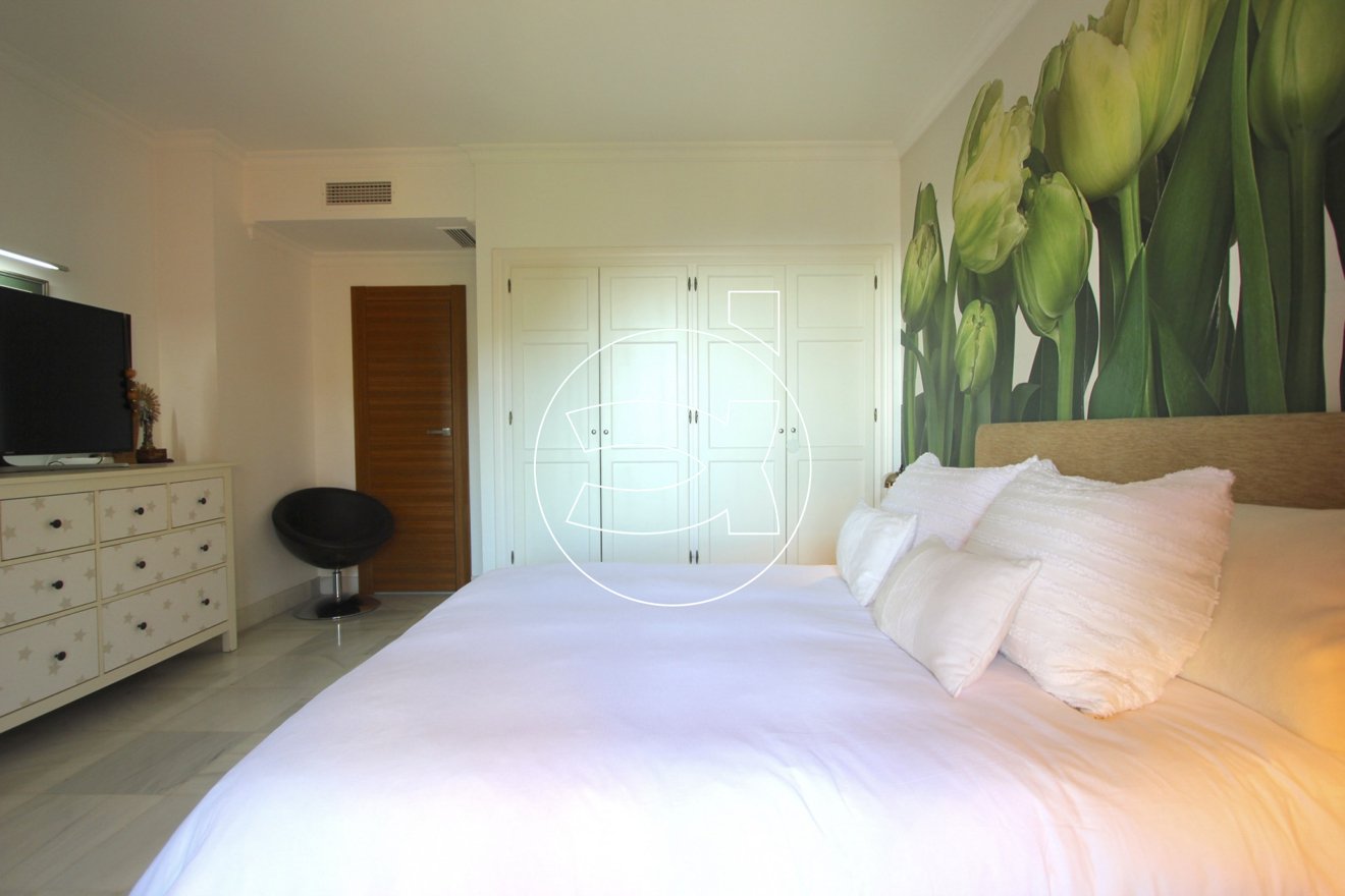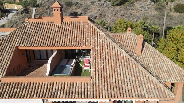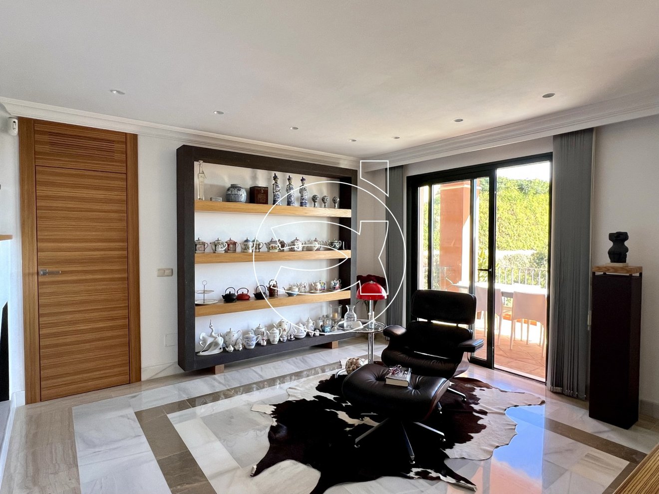 Eingebettet in eine ruhige Wohnanlage mit nur 36 Nachbarn bietet dieses Penthouse unvergleichliche Privatsphäre. Es befindet sich in der Urbanisation Monte Halcones und genießt eine erhöhte Lage zwischen San Pedro de Alcántara und Ronda, umgeben von üppigem Grün und Golfplätzen. Der direkte Zugang zu La Quinta ermöglicht eine einfache Erkundung von Nueva Andalucía.