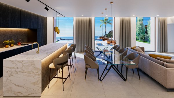 Mit 200 m² Wohnfläche und einem Grundstück von 500 m² bietet diese Villa drei große Schlafzimmer, die alle so konzipiert sind, dass sie maximale Privatsphäre und Komfort bieten, ergänzt durch vier Badezimmer. Das geräumige Esszimmer und der offene Wohnbereich schaffen eine warme und anspruchsvolle Atmosphäre, die sich perfekt für Freizeit und gesellige Momente eignet.