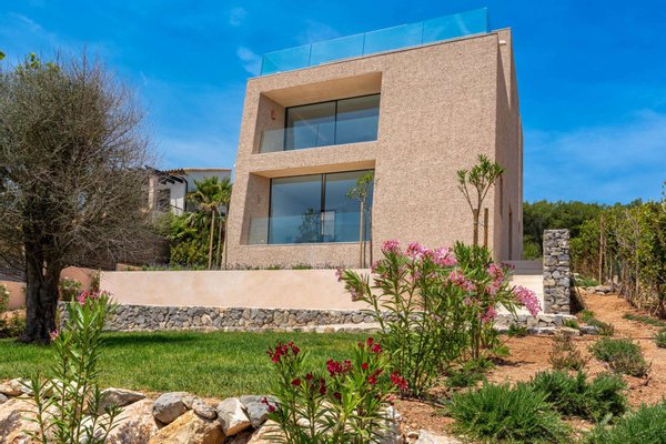 Moderne Neubauvilla in Cala Mesquida, inspiriert von maurischer Architektur und Meerblick pur