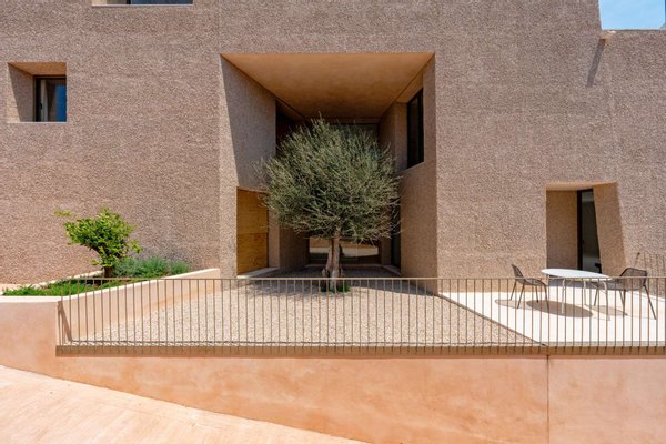 Die Villa erstreckt sich über drei Ebenen. Im Erdgeschoss befinden sich zwei separate Eingänge. Der Haupteingang führt durch einen großzügigen Empfangsbereich mit Blick auf das Treppenhaus und in einen stilvollen Innenhof mit Olivenbaum. Von hier aus gelangt man zu zwei Schlafzimmern – eines davon mit Blick in den Patio, das andere mit Ausrichtung in die Natur – sowie zu einem großzügigen Badezimmer.