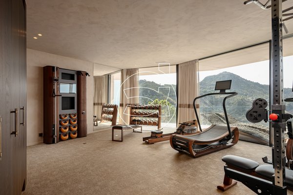 Des Weiteren gibt es ein Heimkino mit einem Audio-/Videosyste, eine Garage für 4-5 Autos., einen Infinity-Pool mit Springbrunnen und Liegewiesen.