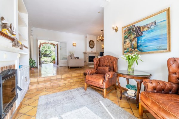 Innen finden Sie ein geräumiges Wohnzimmer mit bequemen Sofas, Sesseln und einer Vielzahl von Sitzbereichen, darunter eine gemütliche Ecke mit eigenem Kamin, wo Sie es sich mit einem Buch gemütlich machen können. Es gibt eine voll ausgestattete Küche mit Frühstücksbereich und ein Gästehaus mit eigenem Wohnzimmer, Kochnische, Kamin und Klimaanlage sowie Holzbalken in den hohen Zimmerdecken.