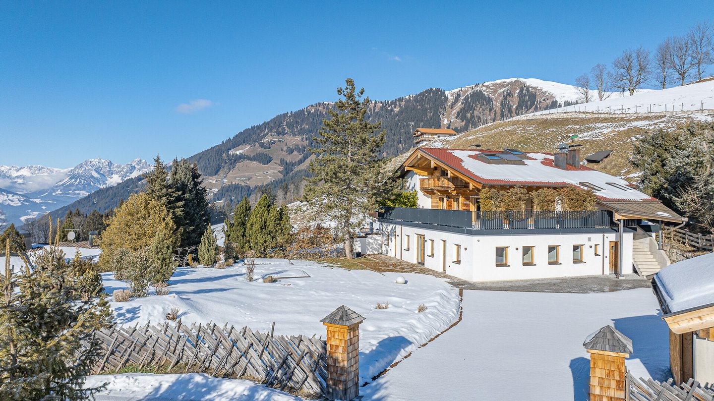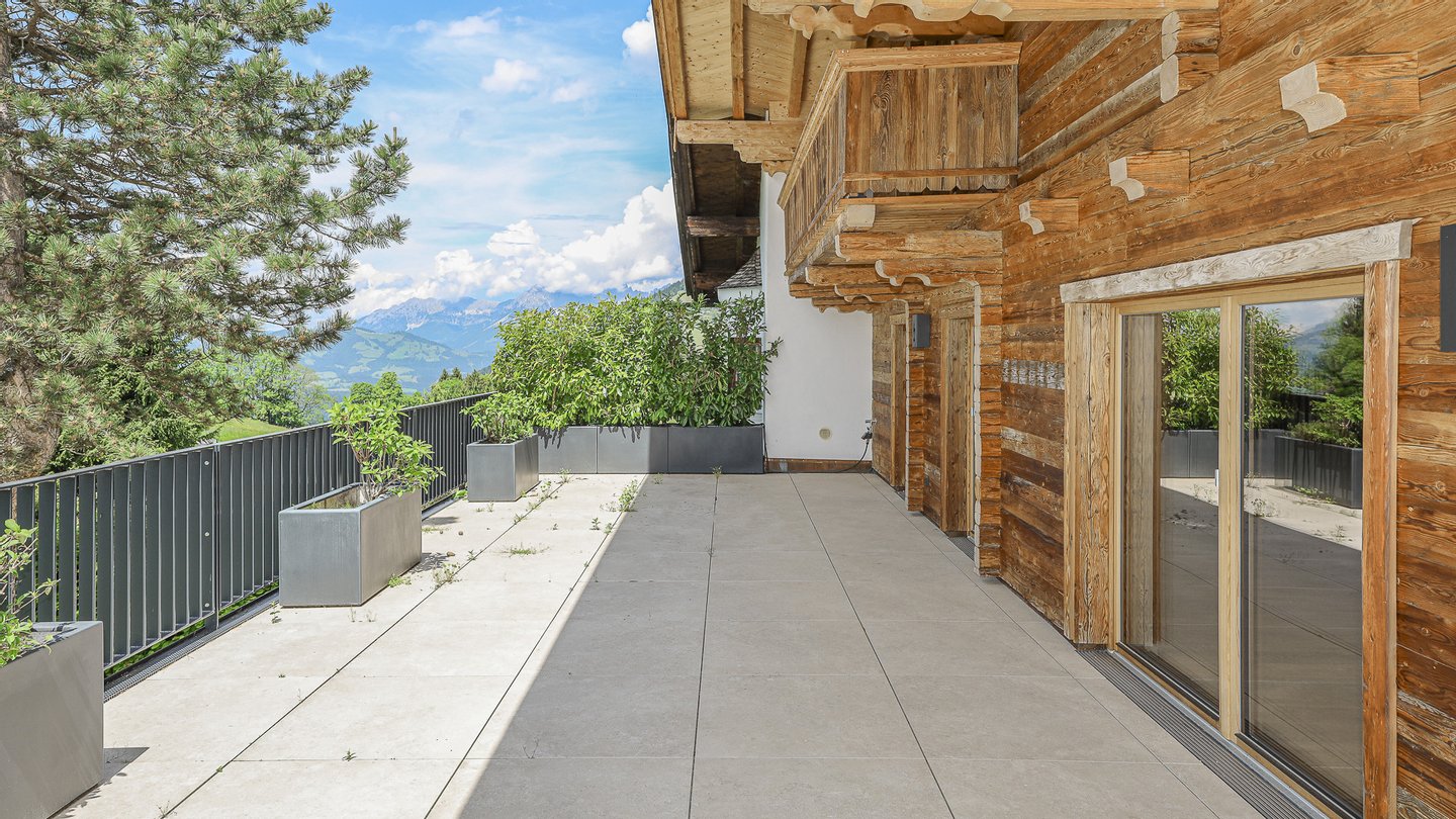 Vom Objekt hat man einen unverbaubaren Panoramablick von den Südbergen über den gesamten Hahnenkamm bis hin zum Wilden Kaiser.