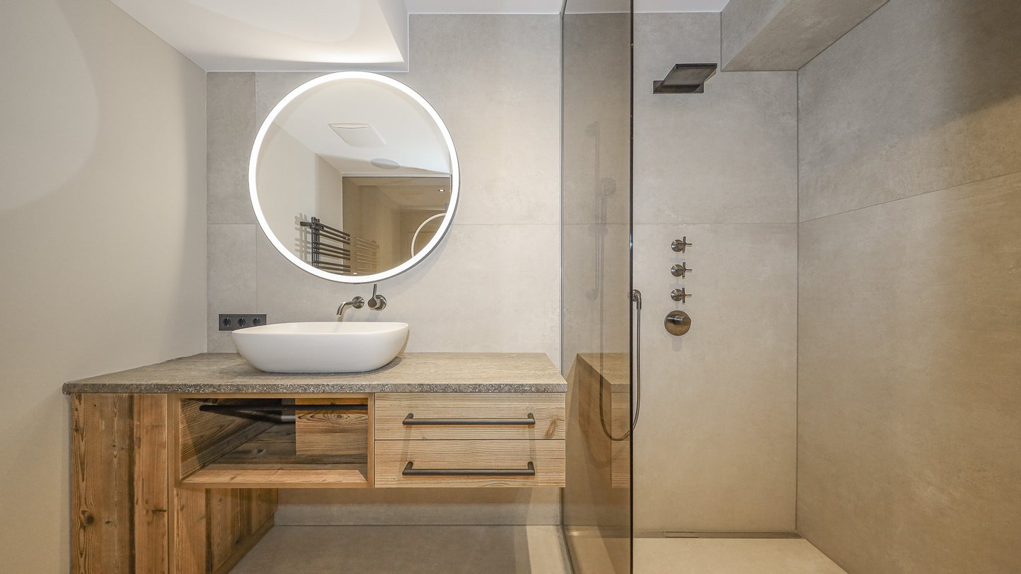 Im Dachgeschoss mit Dachstuhluntersicht befinden sich zwei komfortable Schlafzimmer sowie eine Ankleide und ein Badezimmer mit Dusche. Von beiden Schlafzimmern gelangt man auf einen Balkon.