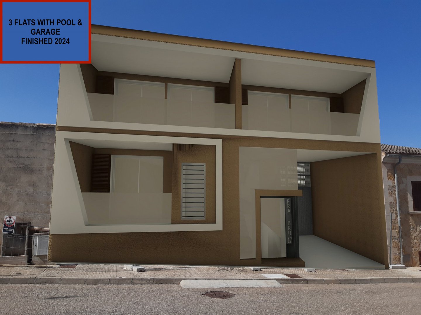 Willkommen in diesem traumhaften Mehrfamilienhaus in der schönen Stadt Muro auf Mallorca. Das Haus mit drei Wohneinheiten ist der perfekte Ort für Ihre Investition oder auch als Eigenheim. Die hochwertigen Materialien und die lichtdurchfluteten Räume sorgen für ein einladendes Ambiente. Im Erdgeschoss erwartet Sie eine großzügige, circa 140 m² große Wohnung mit drei Zimmern, zwei Badezimmern, einer Terrasse und einem großen Garten mit einem Pool. Die beiden Wohnungen im Obergeschoss bieten jeweils zwei Terrassen und circa 100 m² Wohnfläche mit zwei Schlafzimmern und zwei Bädern. Ein Highlight ist die überdachte Terrasse, von der aus Sie über eine Treppe zur Dachterrasse gelangen. Dort können Sie den herrlichen Ausblick genießen und entspannte Stunden verbringen. Das Mehrfamilienhaus befindet sich noch im Bau, sodass Sie die Möglichkeit haben, Details im Innenausbau nach Ihren Wünschen festzulegen. Ende des Jahres werden Ihnen drei perfekte Wohneinheiten schlüsselfertig übergeben. Nutzen Sie diese Gelegenheit und besichtigen Sie die Baustelle, um sich von dem Potenzial dieses Objekts zu überzeugen. Investieren Sie in Ihre Zukunft und sichern Sie sich eine hohe Rentabilität von 5-7 %. Wir freuen uns darauf, Sie in Ihrem neuen Zuhause in Muro willkommen zu heißen.