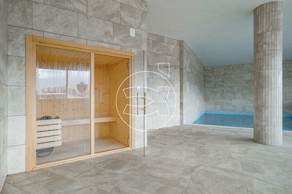 Den Bewohnern dieser Wohnung stehen eine Reihe von Annehmlichkeiten zur Verfügung, darunter ein Außenpool, ein Hallenbad, ein Whirlpool sowie ein Fitnessstudio.
