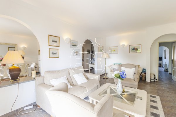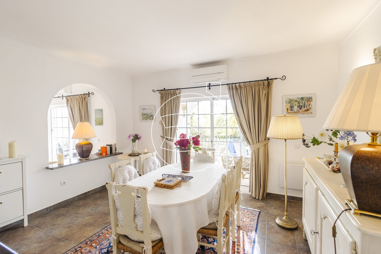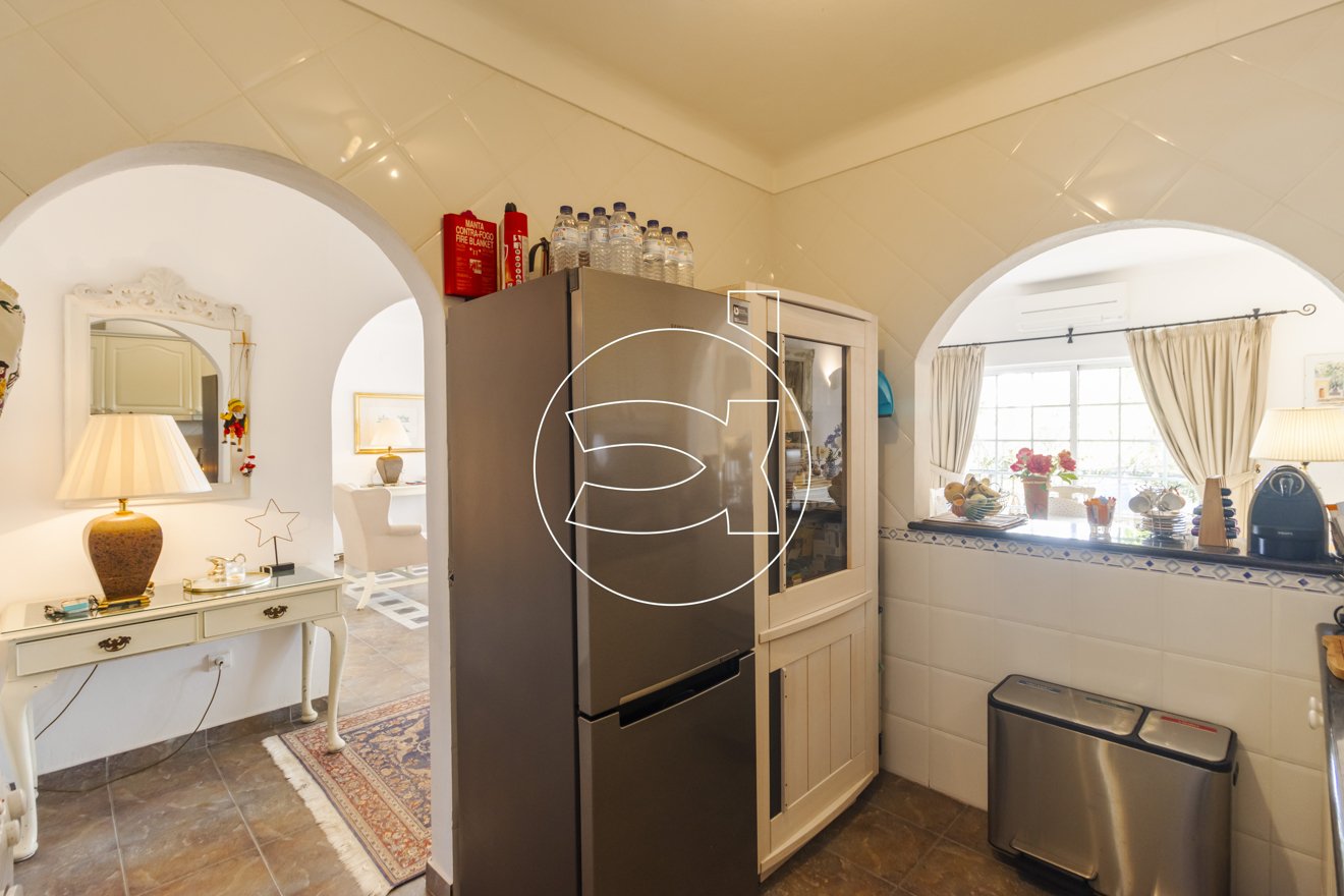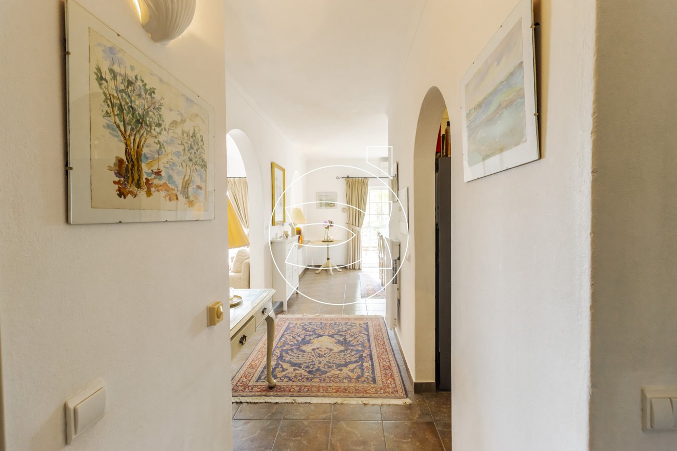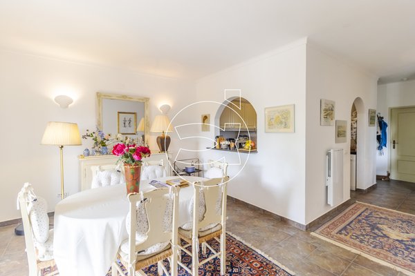 Beim Betreten führt ein Flur anmutig zu einem geräumigen Ess- und Wohnbereich, der durch bogenverzierte Wände geschickt getrennt ist sowie zeitlose Eleganz und Charakter ausstrahlt.