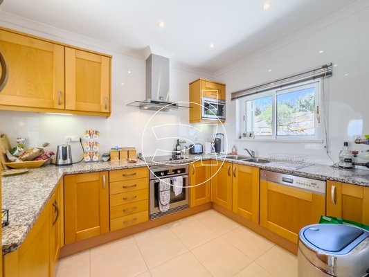 Angrenzend an den Essbereich befindet sich eine voll ausgestattete Küche mit einem offenen Bogengang. Ein Gäste-WC befindet sich ebenfalls auf dieser Ebene.