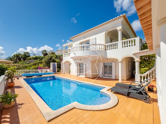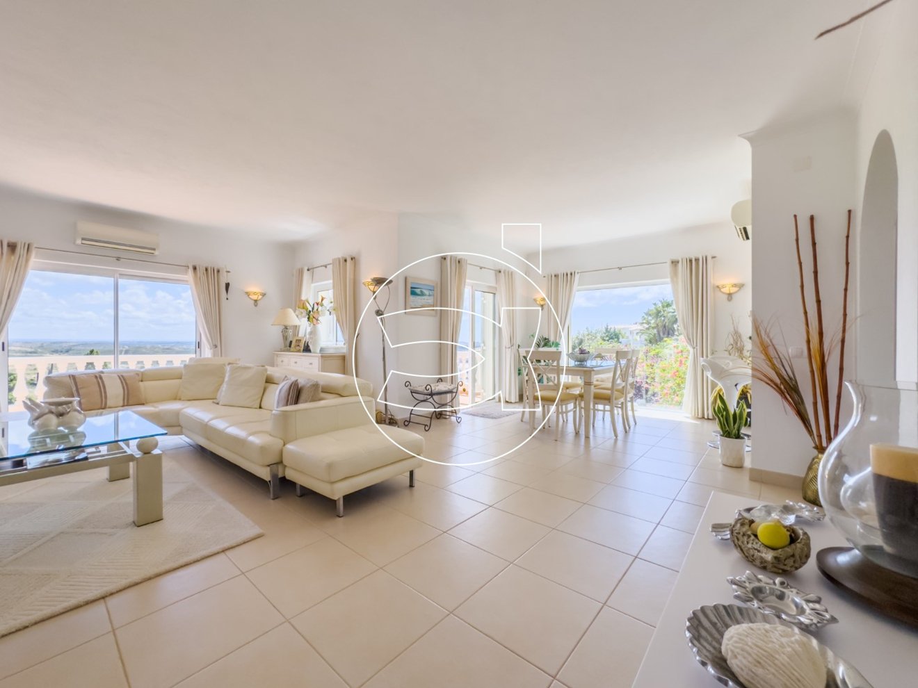 Eine geschwungene Calçada-Auffahrt führt Sie bis zum Eingang. Wenn Sie die Villa betreten, führt Sie ein Flur in einen stilvollen, offenen Wohn- und Essbereich mit drei Terrassen, die den Panoramablick maximieren.