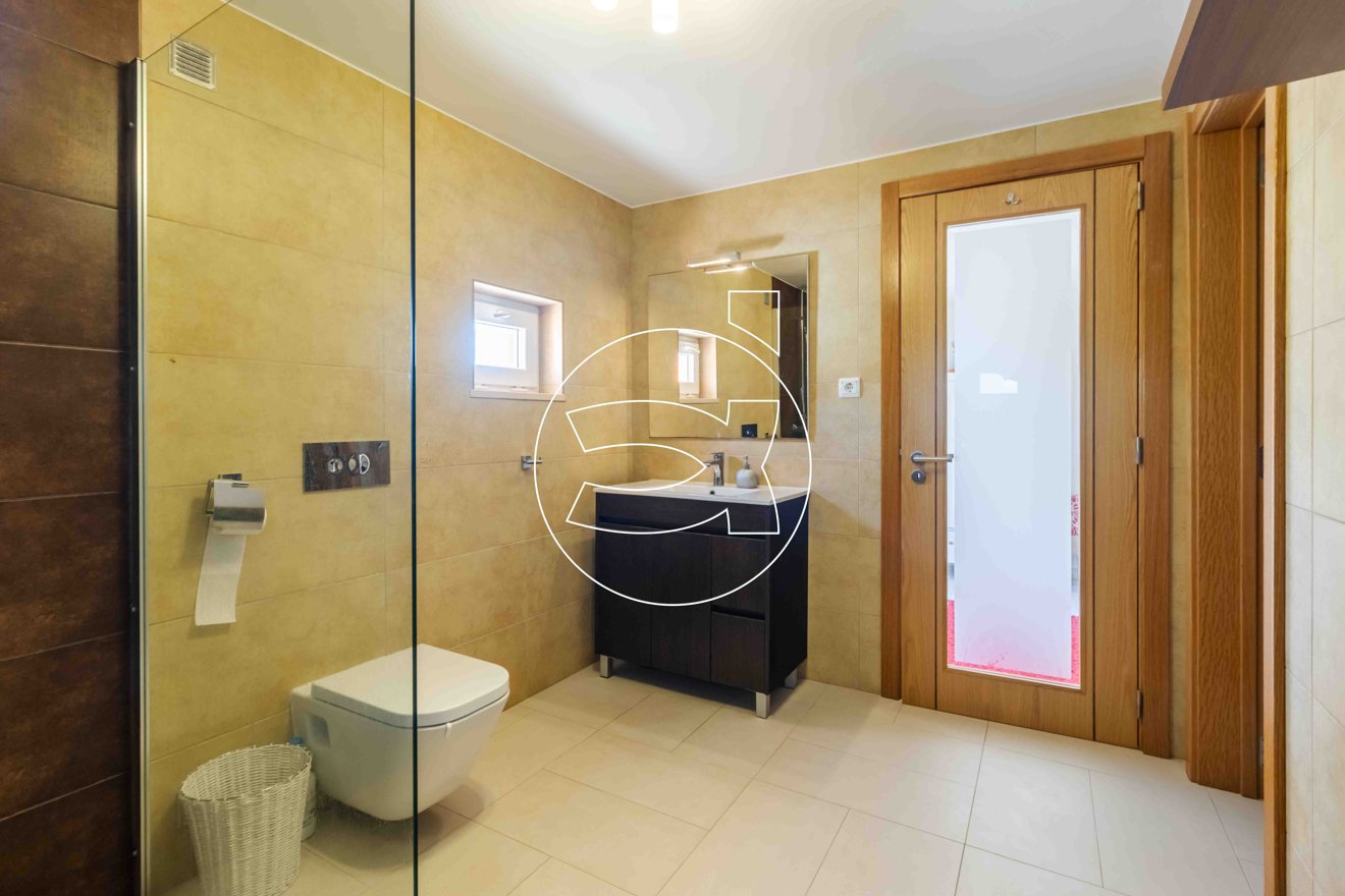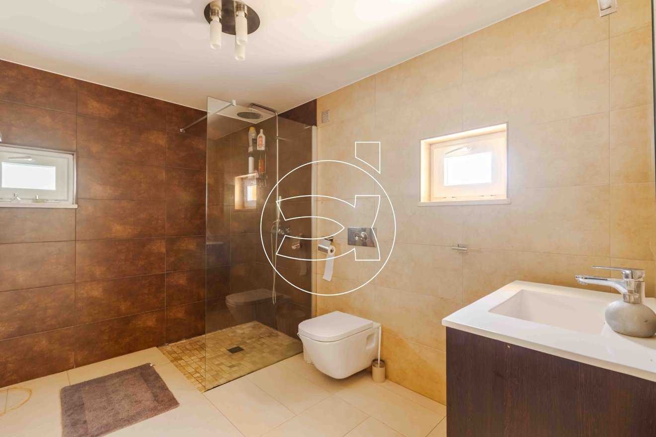 Das obere Stockwerk beherbergt das Hauptschlafzimmer, komplett mit einem großen, modernen en-suite Badezimmer sowie einer privaten Terrasse mit atemberaubendem Blick auf die Stadt und das Meer.