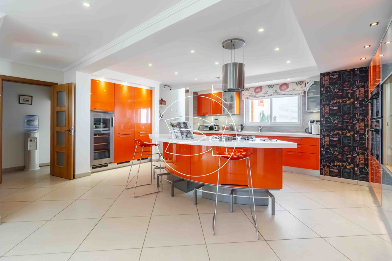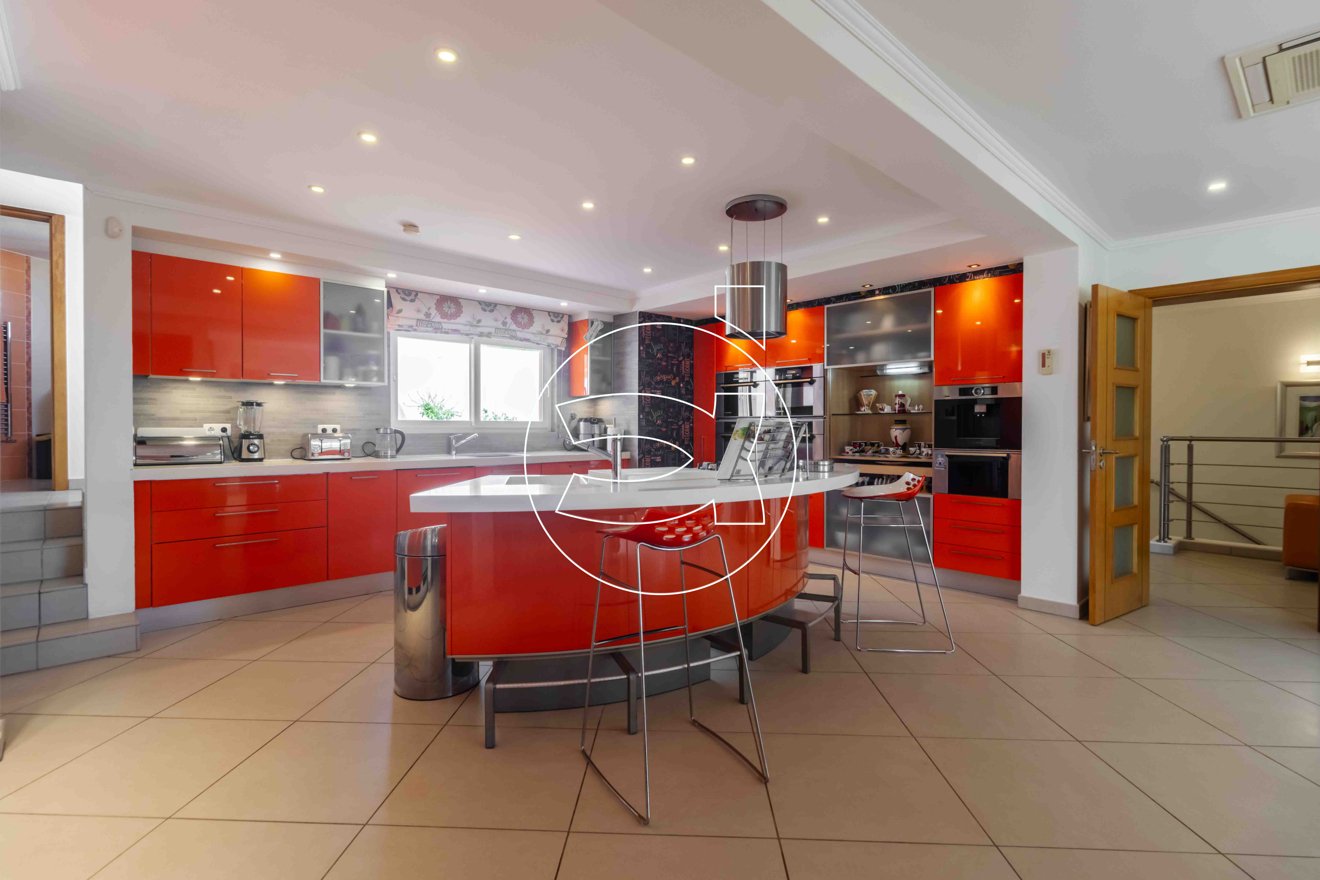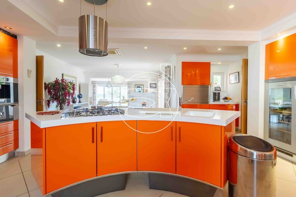 Der offene Raum verfügt über einen großzügigen Wohn- und Essbereich sowie eine moderne, voll ausgestattete Küche mit allen modernen Geräten, 4 Öfen, Weinkühler, Geschirrspüler, Tellerwärmer und Kühl-Gefrierkombination.