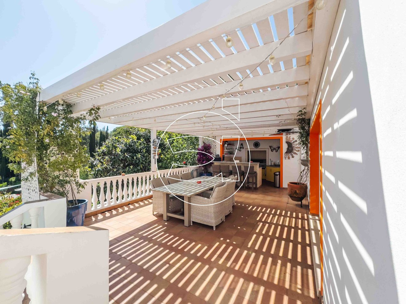 Von hier aus haben Sie auch Zugang zum großen Grillbereich, perfekt für Mahlzeiten im Freien und Zusammenkünfte.