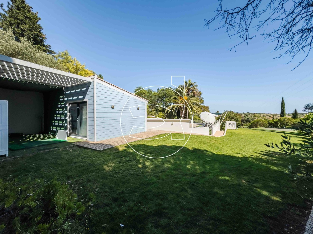 Die gepflegten Gärten tragen zum Charme der Villa bei. Weiterhin gibt es zwei zusätzliche Gebäude auf dem Grundstück. Eines wird als Gartenschuppen genutzt, das andere beherbergt ein Fitnessstudio.