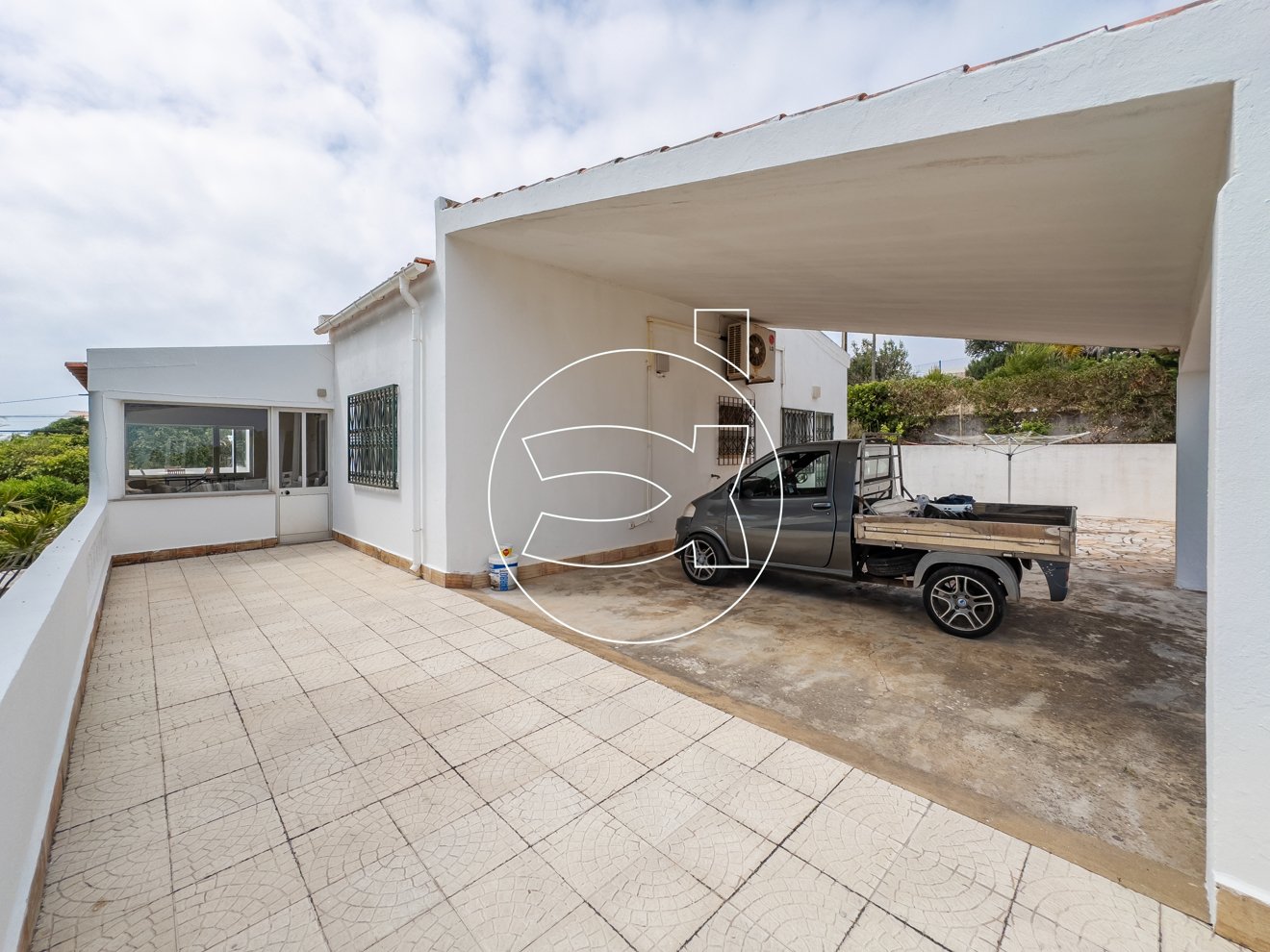 Die Villa verfügt über zwei Eingänge und eine große, geschwungene Auffahrt, die zum Anwesen führt, welches auf einer Ebene angelegt ist.