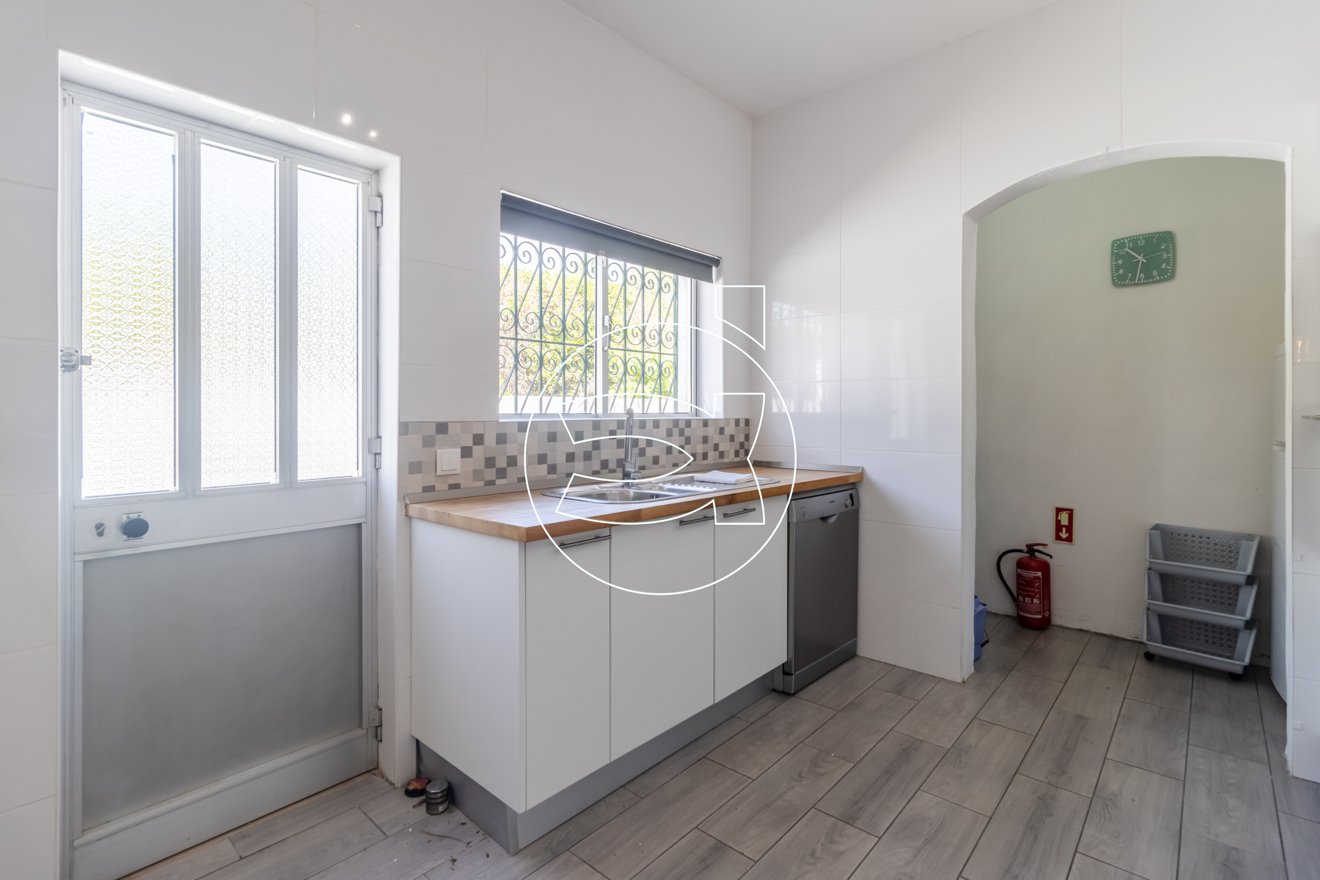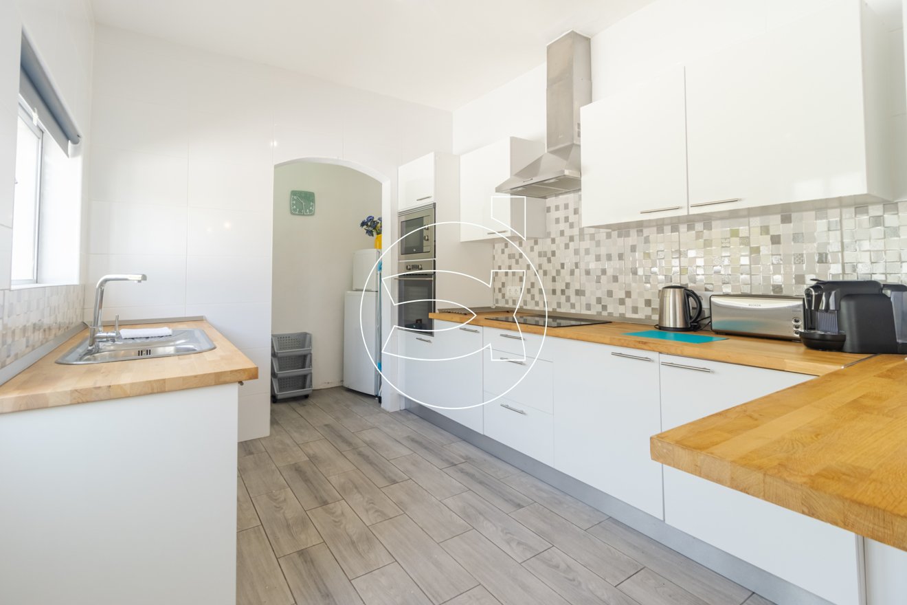 Die komplett renovierte Küche verfügt über einen Hauswirtschaftsraum und eine Tür, die zu einer Außenterrasse führt, welche wiederum Zugang zum Poolbereich bietet.