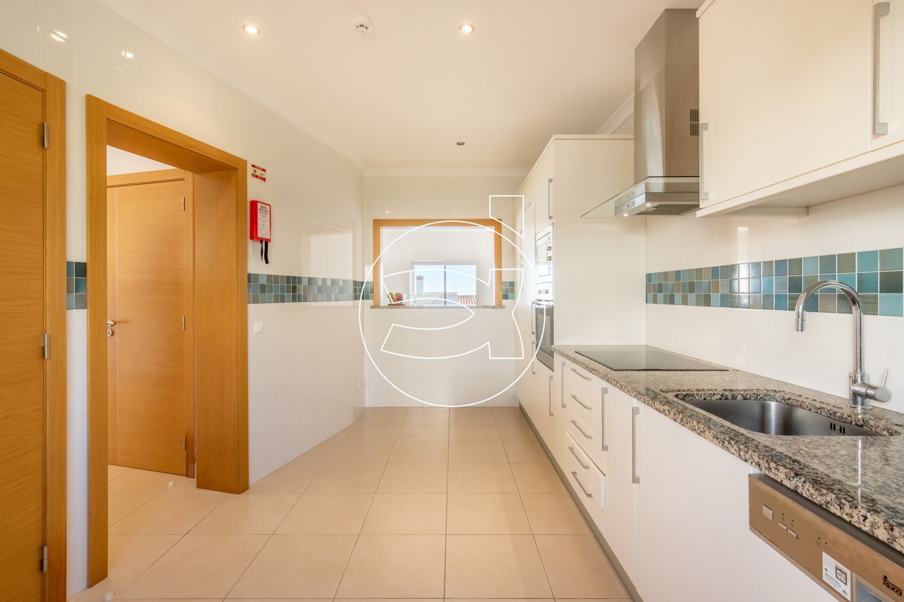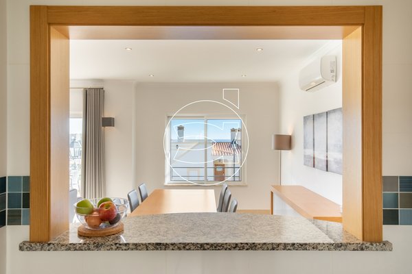 Die Küche hat ein offenes Fenster zum Wohnzimmer, welches beide Bereiche miteinander verbindet sowie eine praktische Unterstützung für Mahlzeiten bietet.