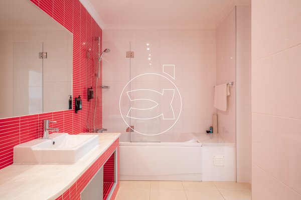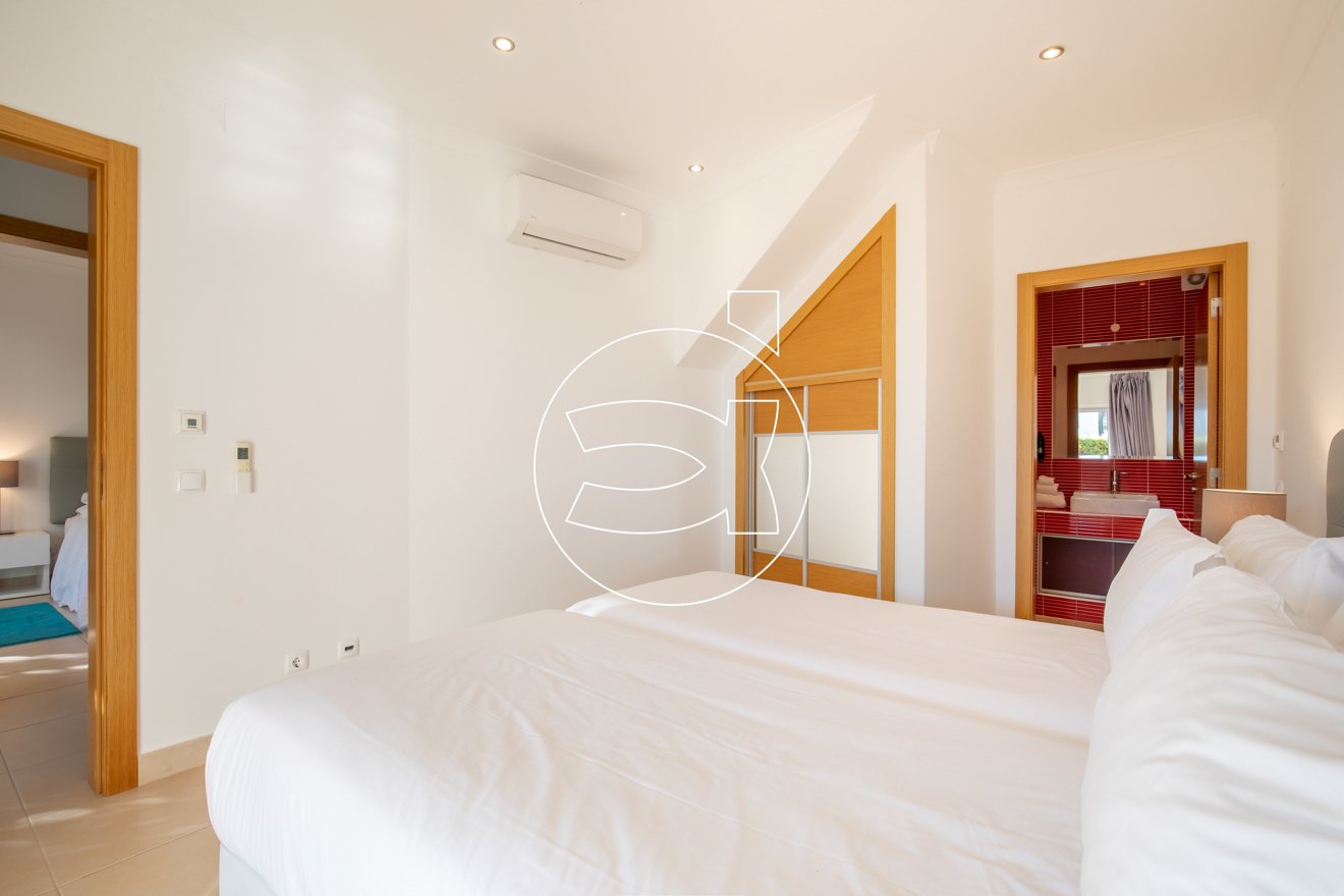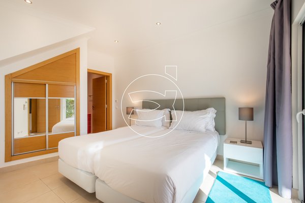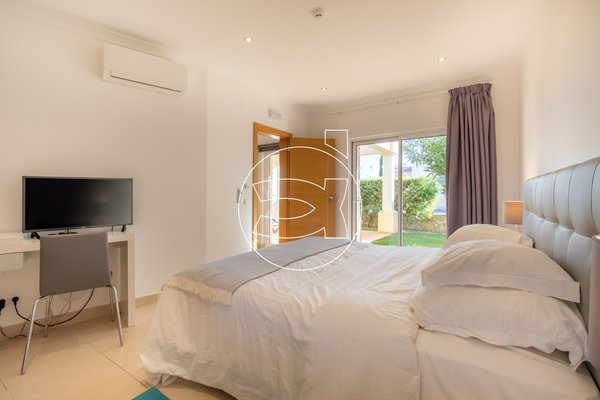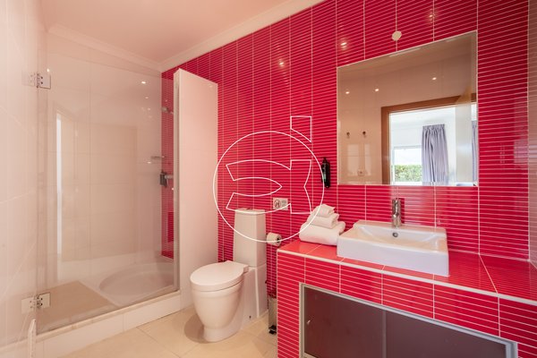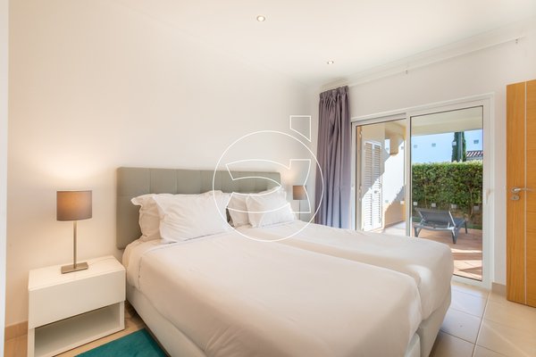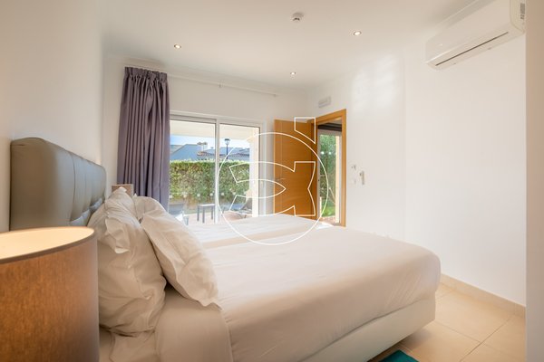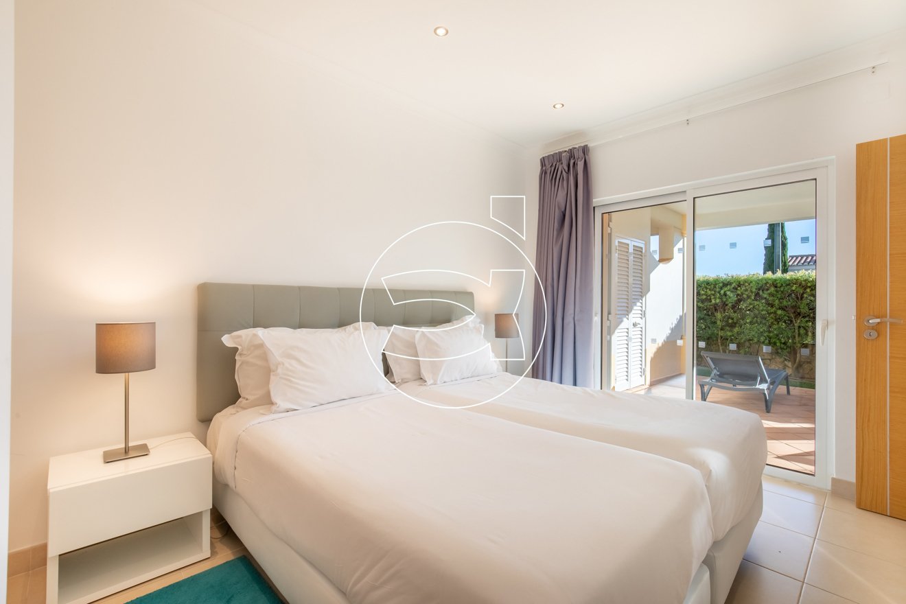 Im Erdgeschoss befinden sich zwei Doppelzimmer mit Einbauschränken, privaten Badezimmern und großen Schiebefenstern, die sich zum Garten sowie zur privaten überdachten Terrasse im Erdgeschoss öffnen.
