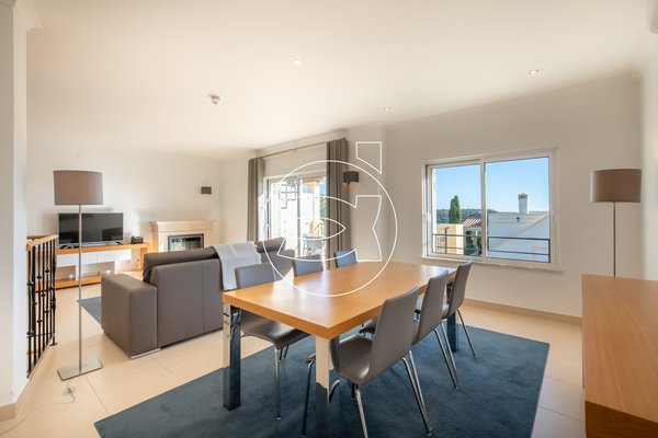 Ein umgekehrtes Layout maximiert den Blick aus dem Wohnzimmer und der Terrasse im Obergeschoss. Das Wohn-/Esszimmer ist geräumig und verfügt über einen elektrischen Kamin.